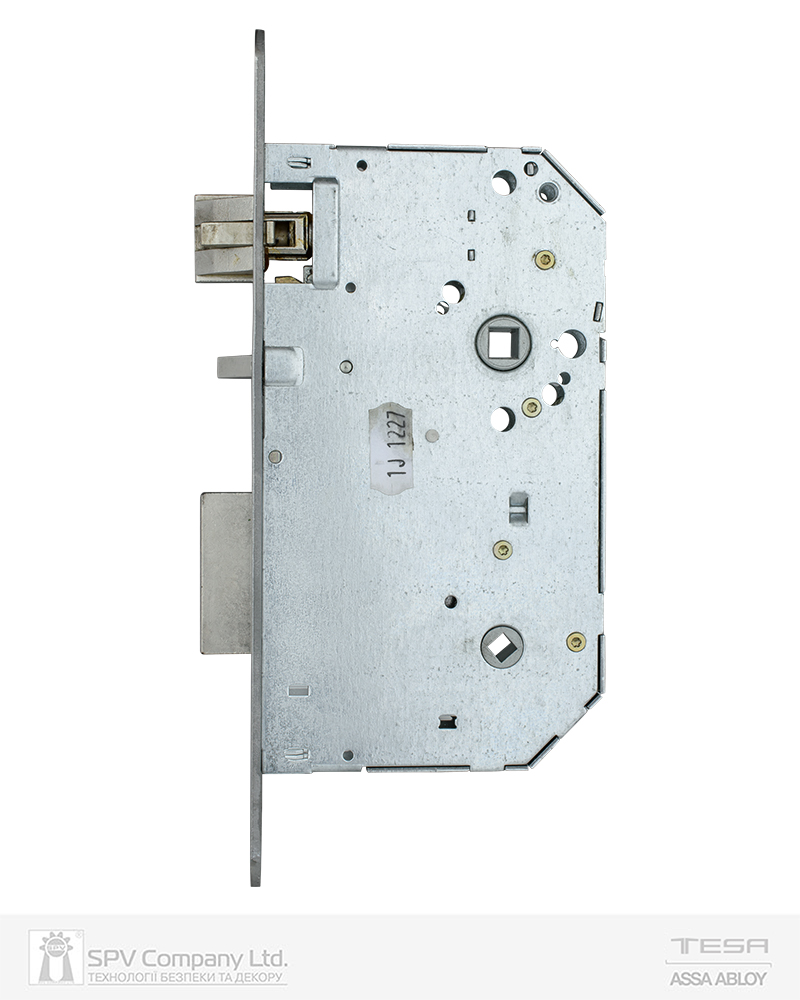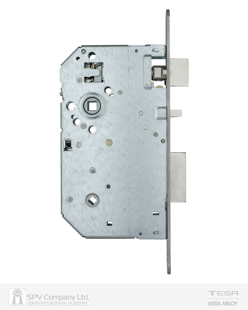 Замок TESA серії 2UB0 моделі 2UB4. Використається в якості механічної частини електронних карткових замків TESA моделей DONNA, SPY або SPY DESIGN в варіантах без механічного циліндру та з з тумблером зсередини приміщення. Замок має функцію антипаніки (при зачиненні на ригель ручка замка зсередини завжди втягує ригель).