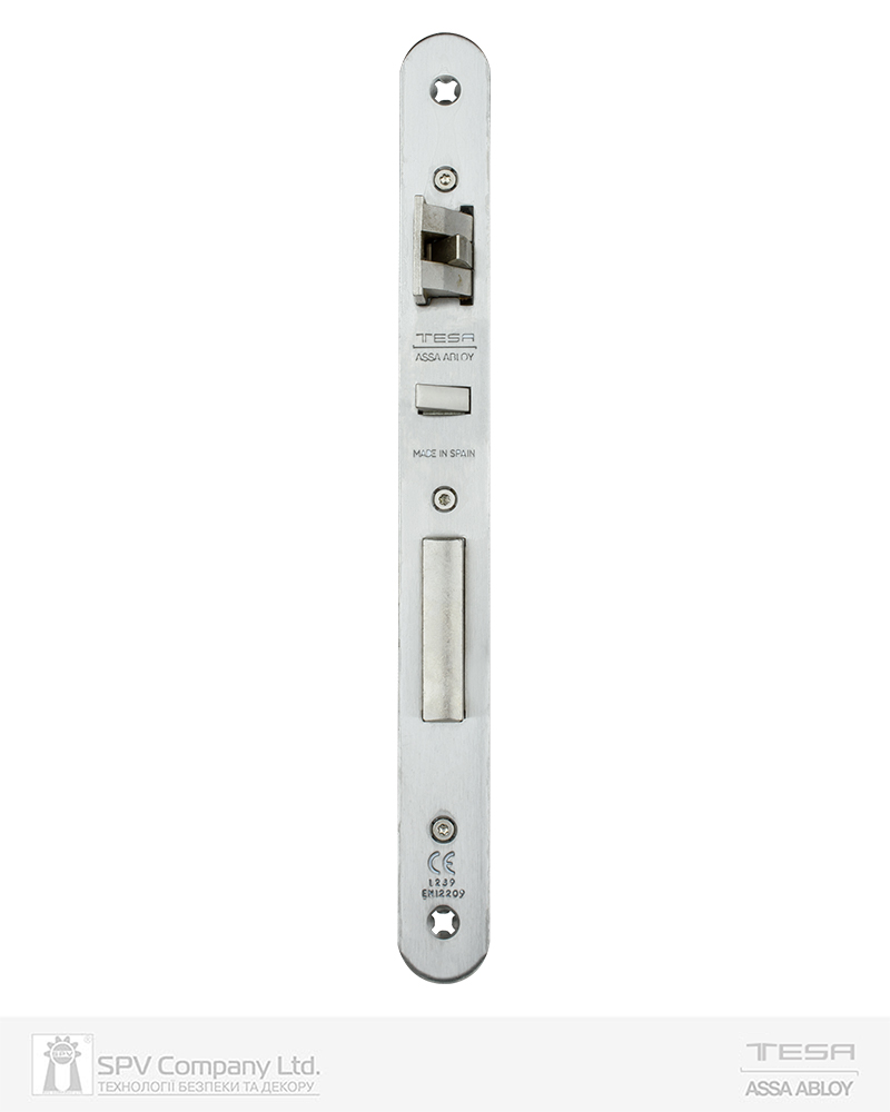 Mіжцентрова відстань 85 мм. BackSet 70 мм. 1 прямокутний ригель. Вихід ригеля – 20 мм. Реверсивна комбінована заскочка спеціальної конструкції, яка покращує роботу замка. Обладнаний запобіжником який при зачинених дверях блокування заскочку. Сторонність – універсальний (правий/лівий). Торцева планка: закруглена (доступна версія із прямокутною планкою), ширина планки 23 мм (доступна версія з шириною 20 мм), обробка – нержавіюча сталь. Комплектація: замок, зворотна планка.