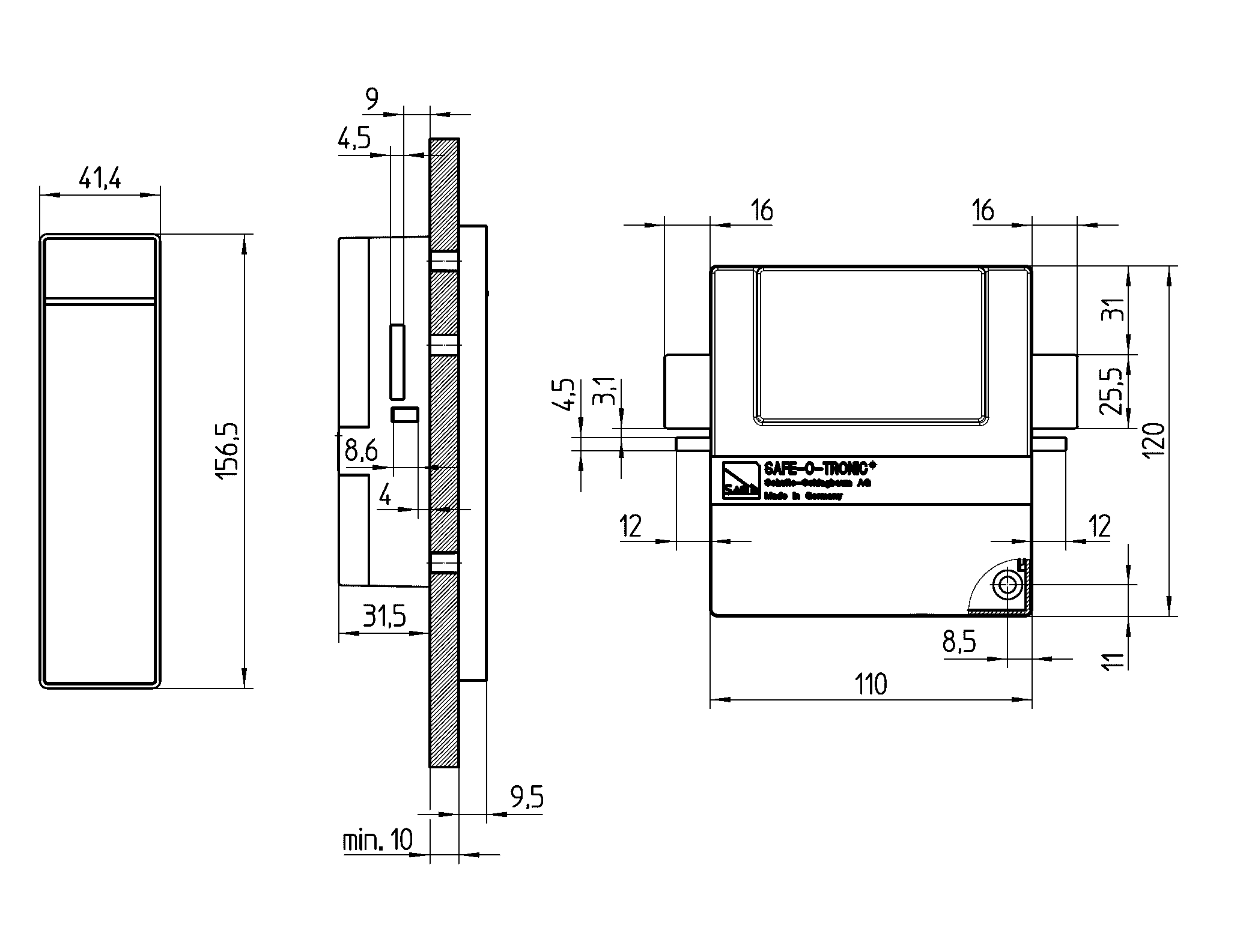 - зовнішній зчитувач: 156,5 х 41,4 х 9,5
