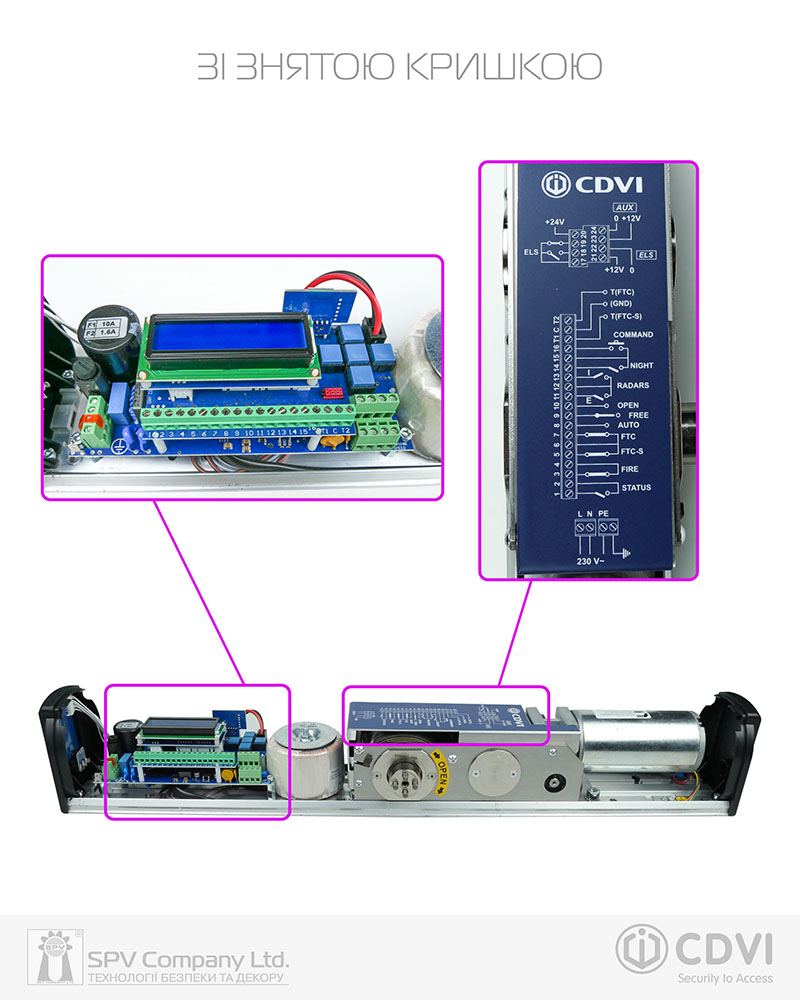 - Вільного відчинення (при відчиненні дверей вручну автомат працює легко без протидії мотору і двері за потреби можна залишити у відчиненому стані)