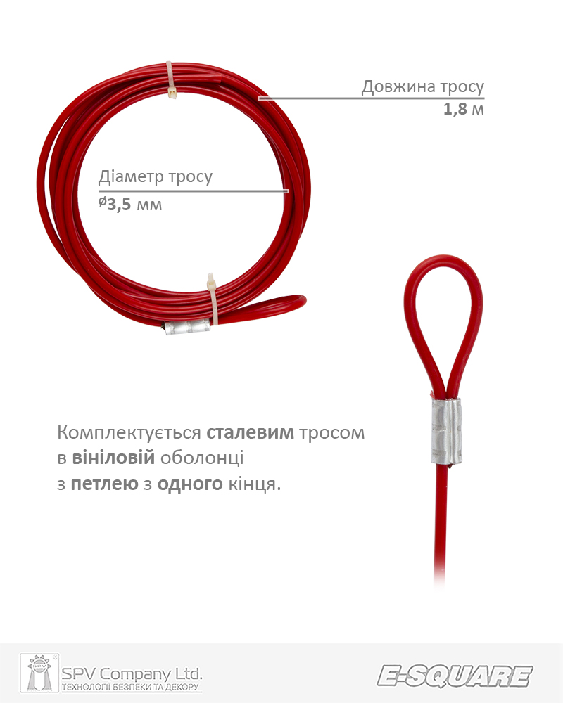 - Матеріал тросу: сталь з вініловим покриттям