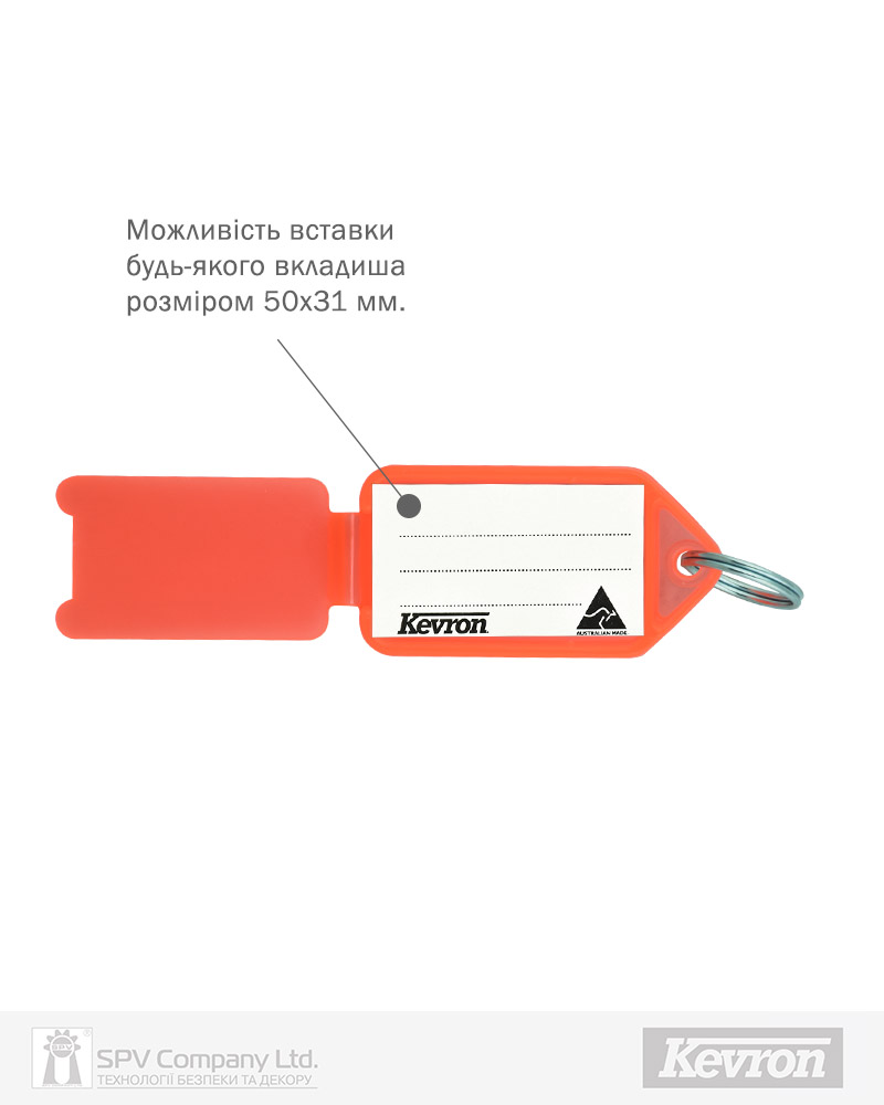 Брелоки Kevron вироблені з високоякісного пластику та надають можливість персоніфікації з допомогою паперової вставки з будь-якою надрукованою інформацією.