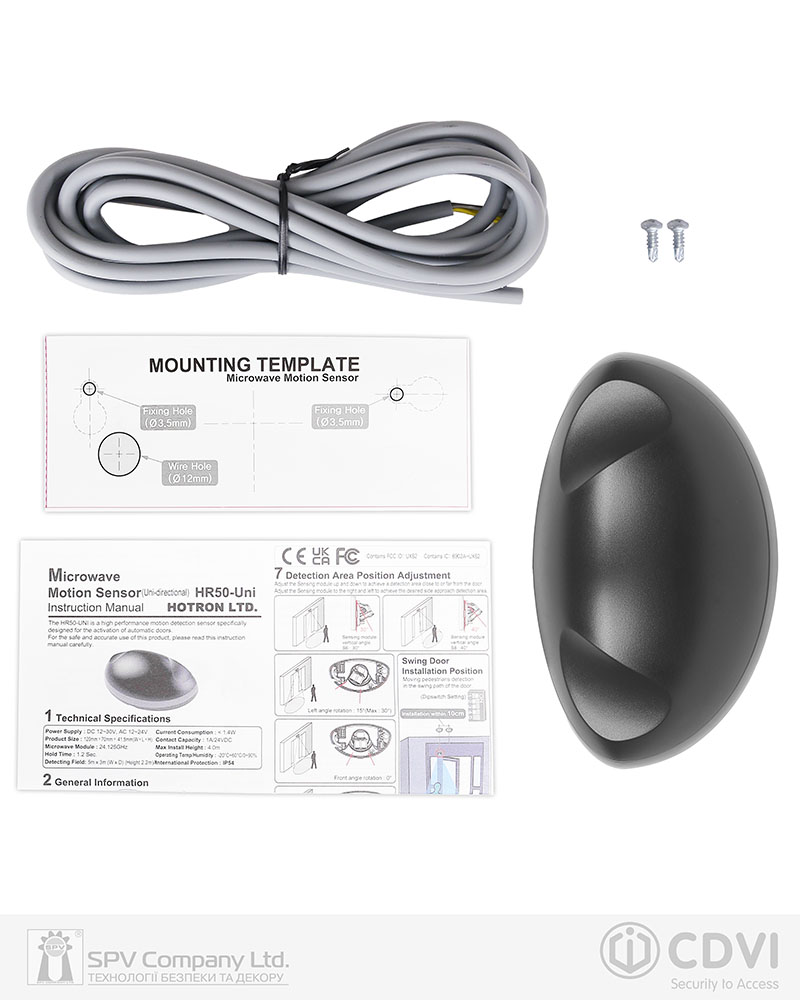 DWHR50 є частиною лінійки надійних датчиків CDVI, що забезпечують автоматичне відкриття дверей та захист користувачів, коли вони перебувають у робочому циклі.