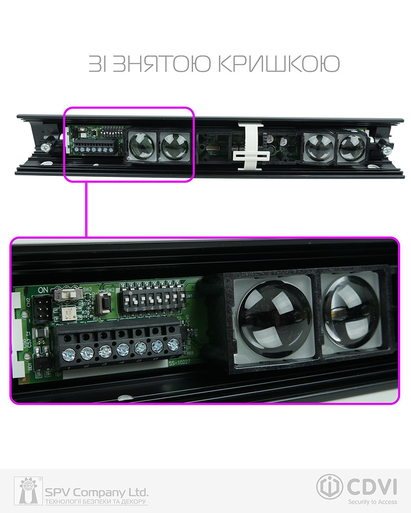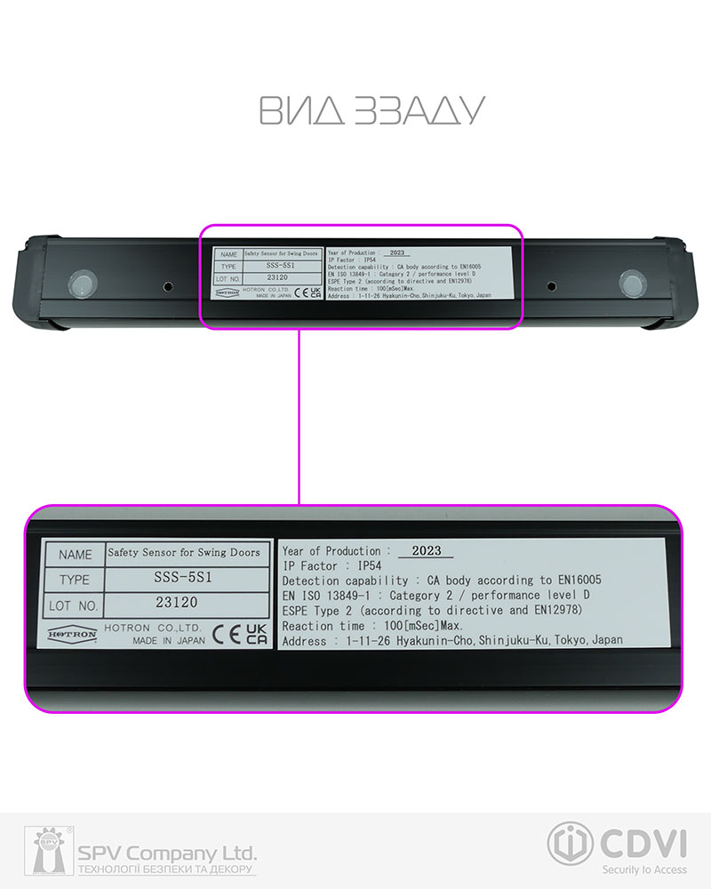 Активний інфрачервоний датчик безпеки. Забезпечує зупинку руху дверей при відчиненні або зачиненні в разі, коли на шляху дверей виявлено перешкоду (людина знаходиться на шляху дверей) та запобігає контакту дверей з людиною.