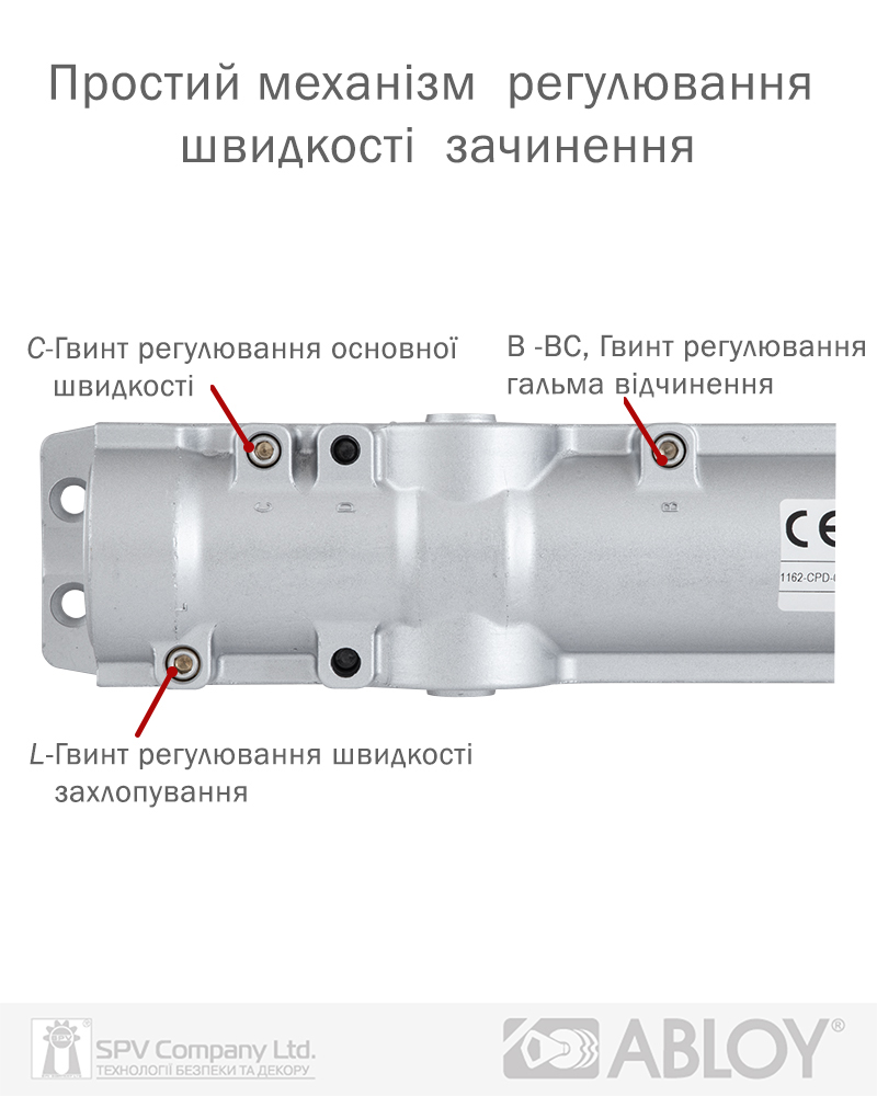 Регулювання початкової та кінцевої швидкостей зачинення.