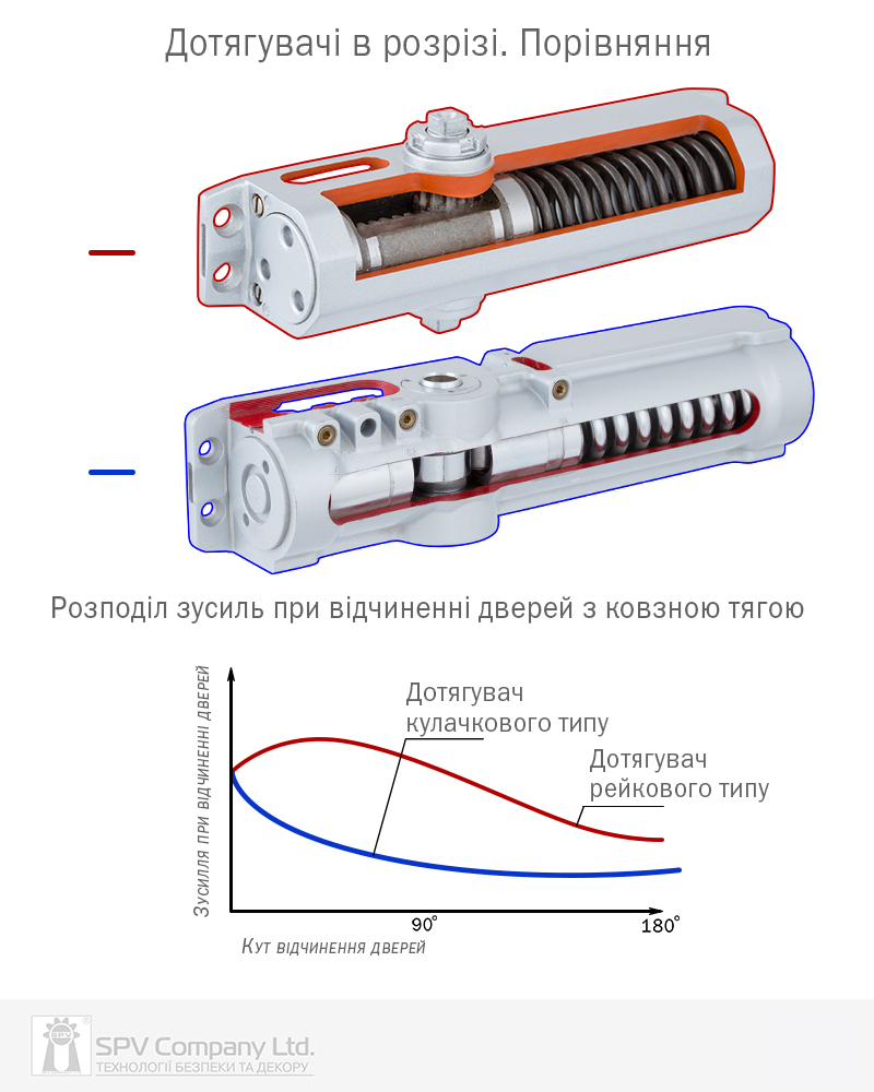 - тяга DC191 – стандартна з фіксацією відкритого положення дверей;