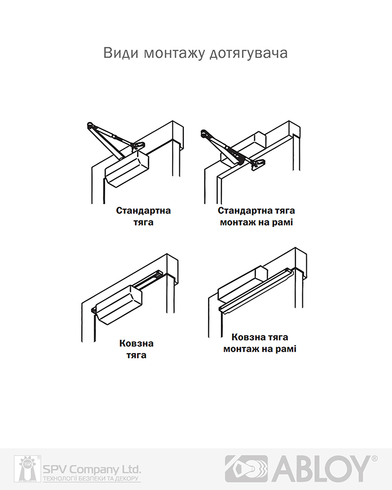 Стандартна тяга, т.з. «коліно», надає два варіанта встановлення дотягувача на дверях.