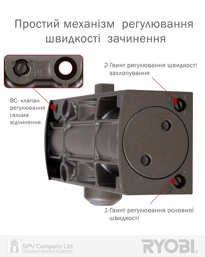 Дотягувач дверей RYOBI® серії 1200 модель D-1200 UNIV (Японія) накладного типу – призначений для керування зовнішніми та внутрішніми дверима.
