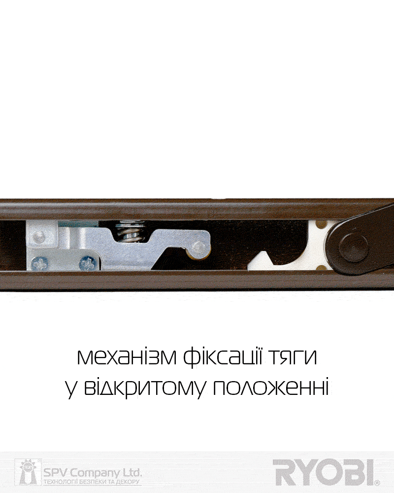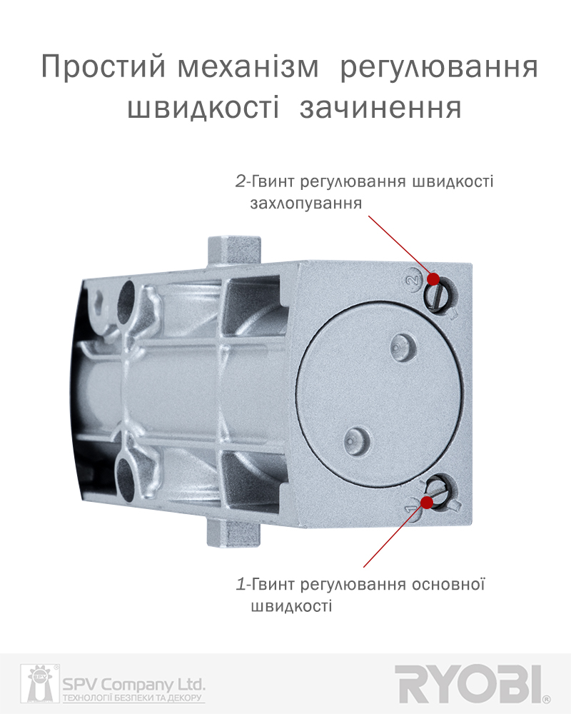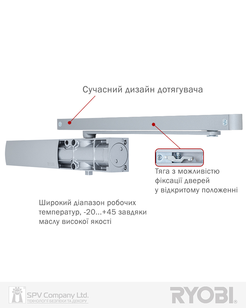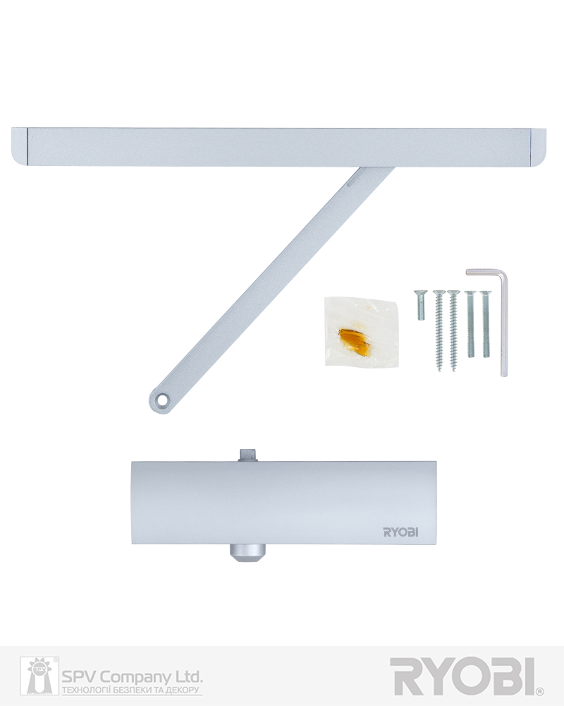 Дотягувач дверей RYOBI® серії 1200 модель D-1200T (Японія) накладного типу з ковзною тягою – призначений для керування внутрішніми та легкими зовнішніми дверима.