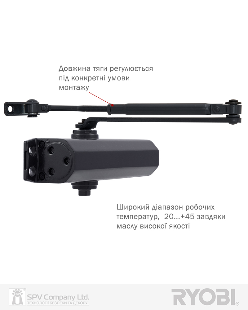 Дотягувач дверей RYOBI® серії 1500 модель D-1554 STD (Японія) накладного типу – призначений для керування зовнішніми та внутрішніми дверима.