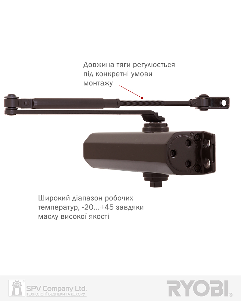 Дотягувач дверей RYOBI® серії 1500 модель D-1554 STD (Японія) накладного типу – призначений для керування зовнішніми та внутрішніми дверима.