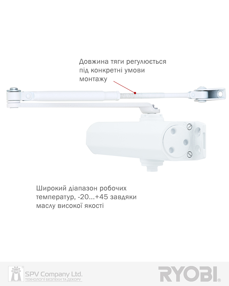 Дотягувач дверей RYOBI® серії 1500 модель D-1554 STD (Японія) накладного типу – призначений для керування зовнішніми та внутрішніми дверима.