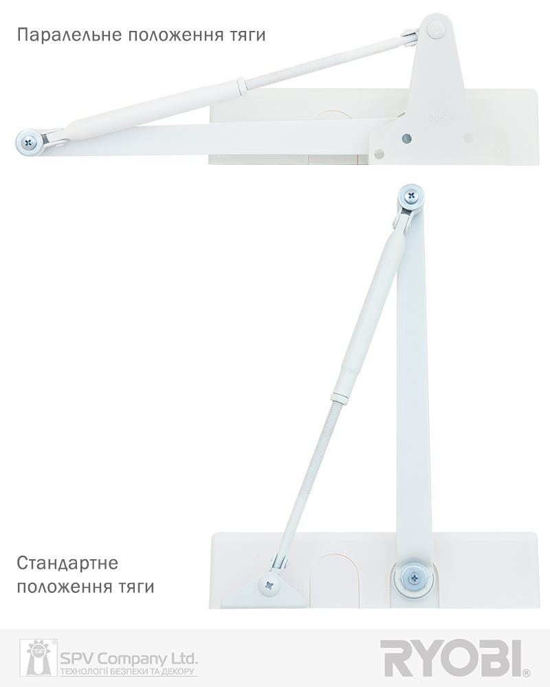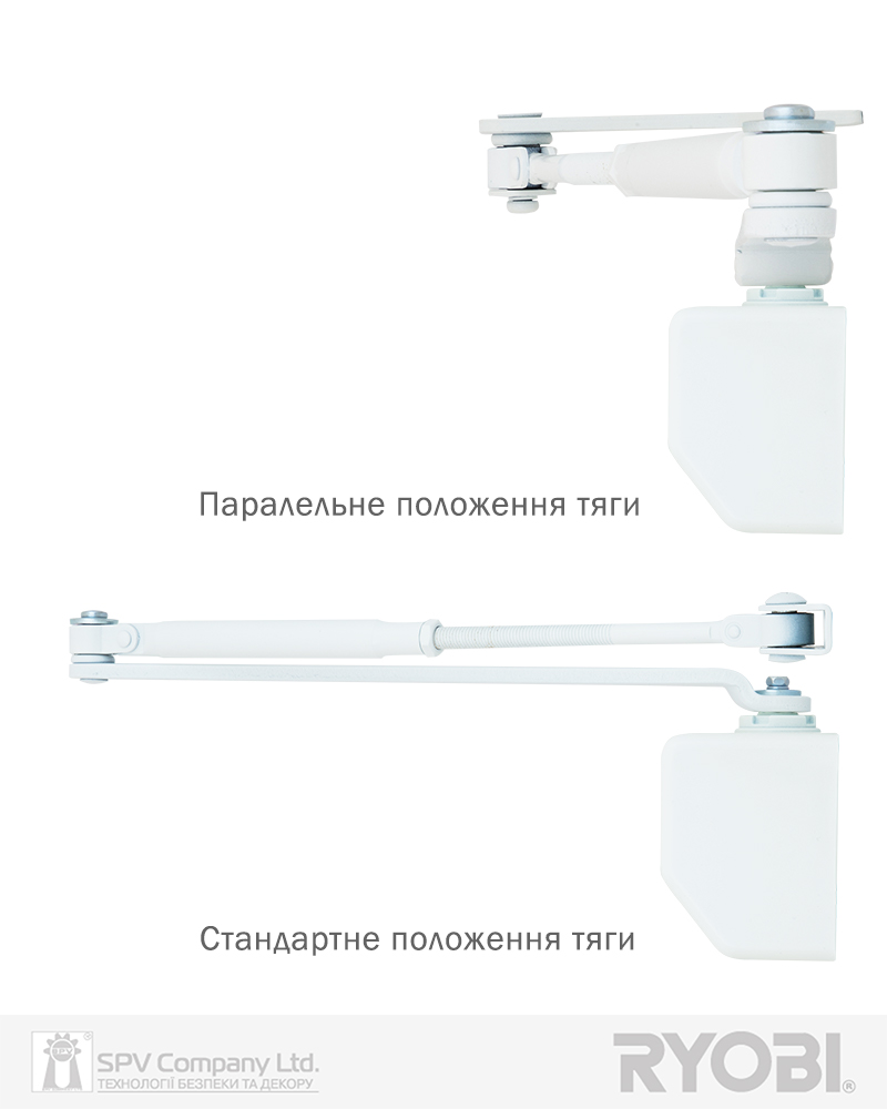 Стандартна тяга, т.з. «коліно», надає два варіанта встановлення дотягувача на дверях.