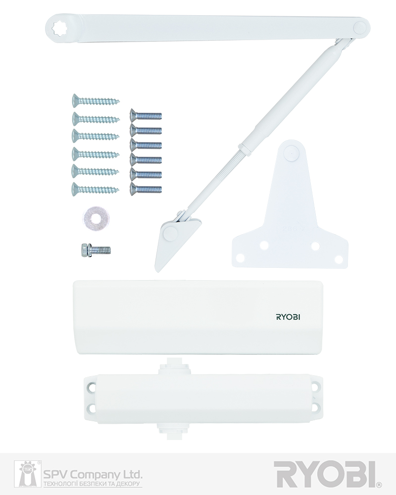 Дотягувач дверей RYOBI® серії 1500 модель D-1504 UNIV (Японія) накладного типу – призначений для керування зовнішніми та внутрішніми дверима.