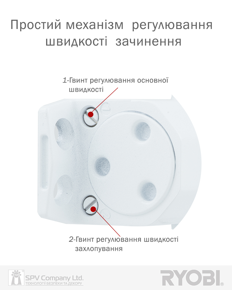 Регулювання початкової та кінцевої швидкостей зачинення.