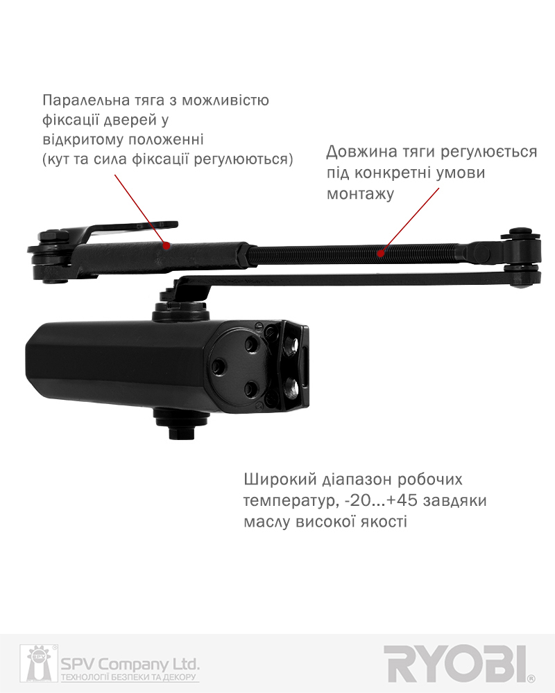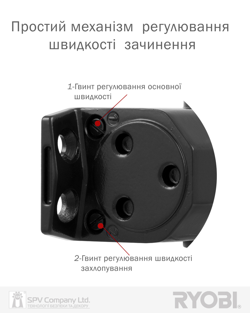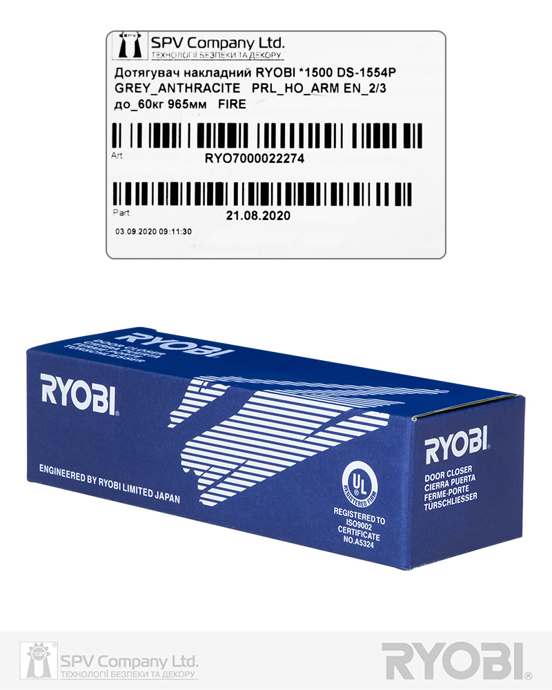 Дотягувач дверей RYOBI® серії 1500 модель DS-1504P PRL_HO(Японія) накладного типу – призначений для керування зовнішніми та внутрішніми дверима.