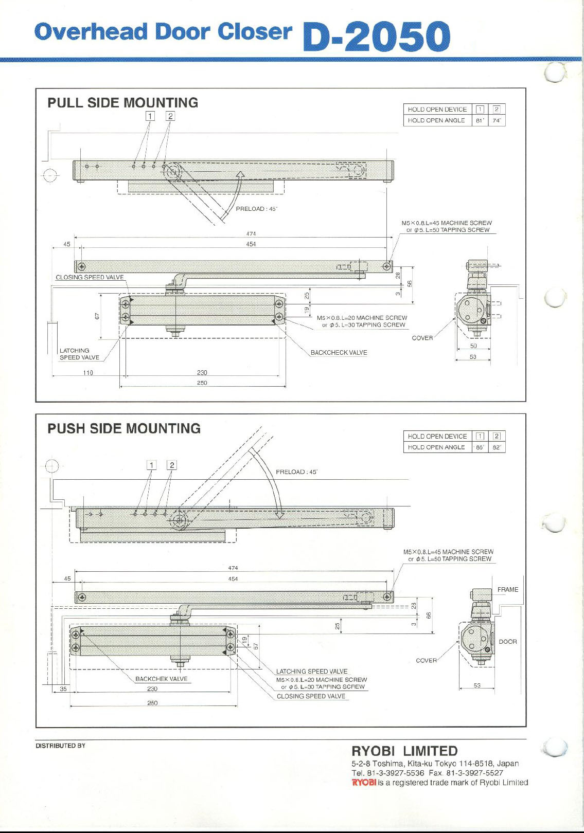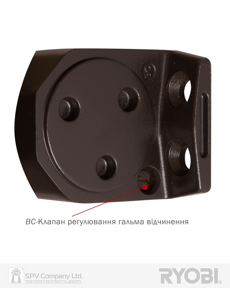 Дотягувач дверей RYOBI® серії 2000 модель D-2005 UNIV (Японія) накладного типу – призначений для керування зовнішніми та внутрішніми дверима.
