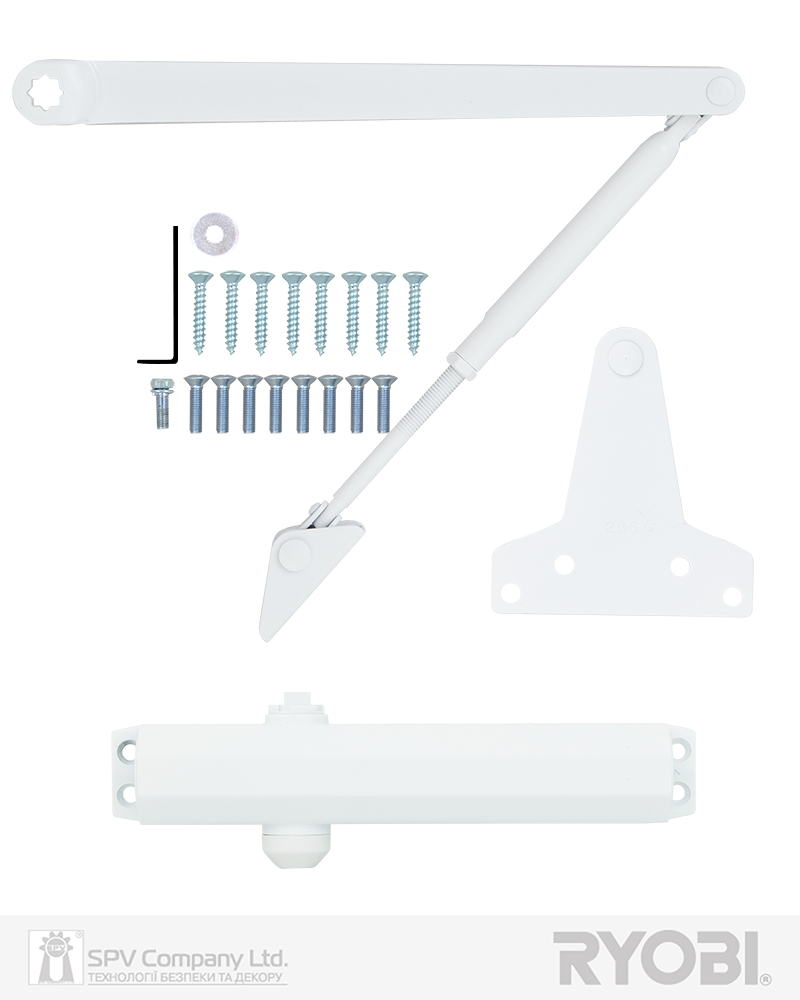 Дотягувач дверей RYOBI® серії 2000 модель D-2005 UNIV (Японія) накладного типу – призначений для керування зовнішніми та внутрішніми дверима.
