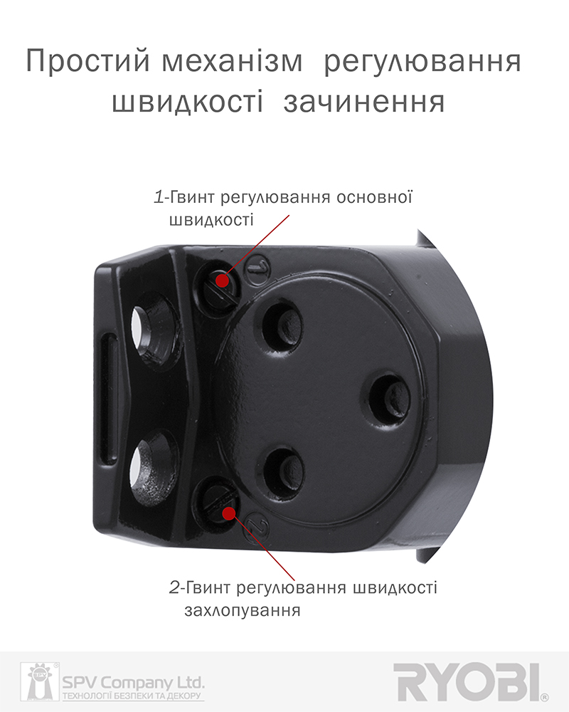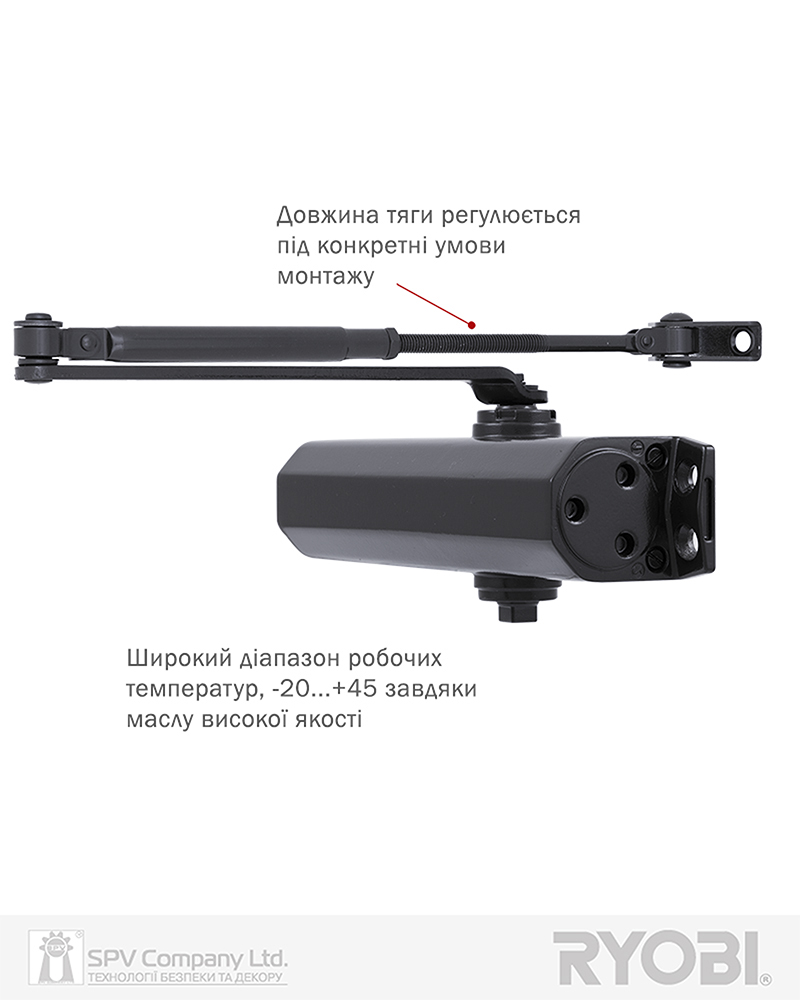 Дотягувач дверей RYOBI® серії 2000 модель D-2055 STD (Японія) накладного типу – призначений для керування зовнішніми та внутрішніми дверима.