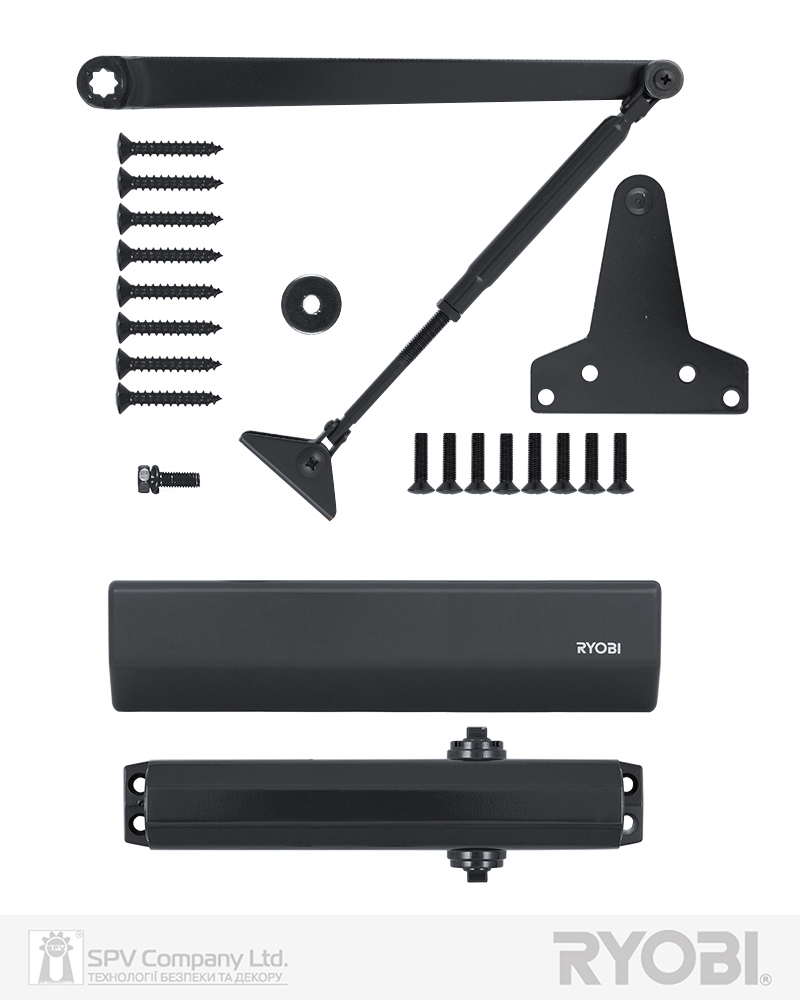Дотягувач дверей RYOBI® серії 2000 модель D-2055 UNIV (Японія) накладного типу – призначений для керування зовнішніми та внутрішніми дверима.