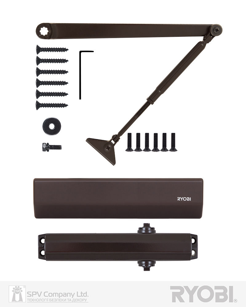 Дотягувач дверей RYOBI® серії 2000 модель D-2055 STD (Японія) накладного типу – призначений для керування зовнішніми та внутрішніми дверима.