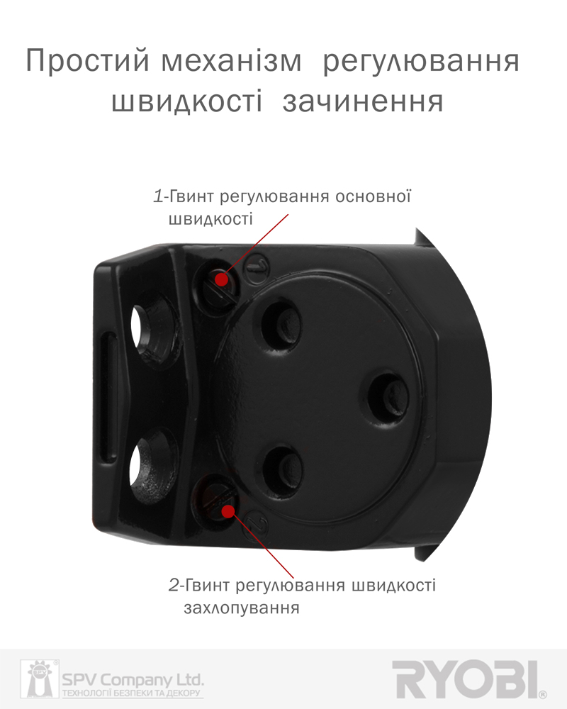 Дотягувач дверей RYOBI® серії 2500 модель D-2550 UNIV (Японія) накладного типу – призначений для керування зовнішніми та внутрішніми дверима.