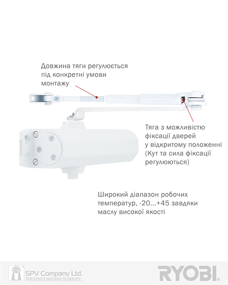 Дотягувач дверей RYOBI® серії 2500 модель DS-2550 STD_HO (Японія) накладного типу – призначений для керування зовнішніми та внутрішніми дверима.