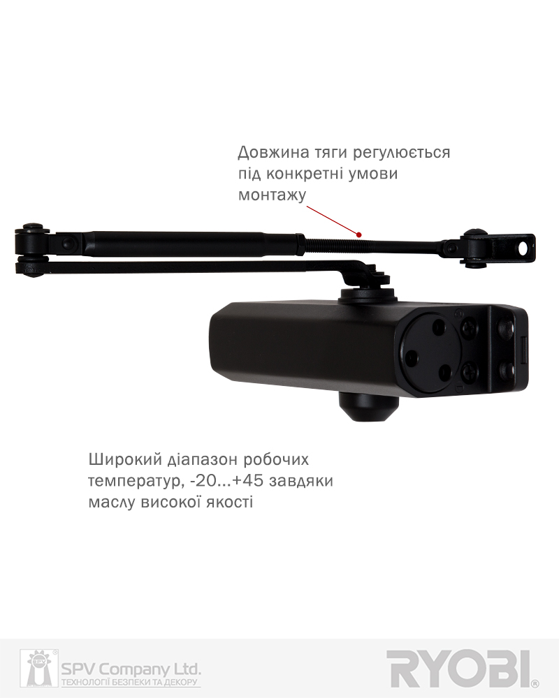 Дотягувач дверей RYOBI® 9903 STD (Японія) накладного типу – призначений для керування внутрішніми та легкими зовнішніми дверима.