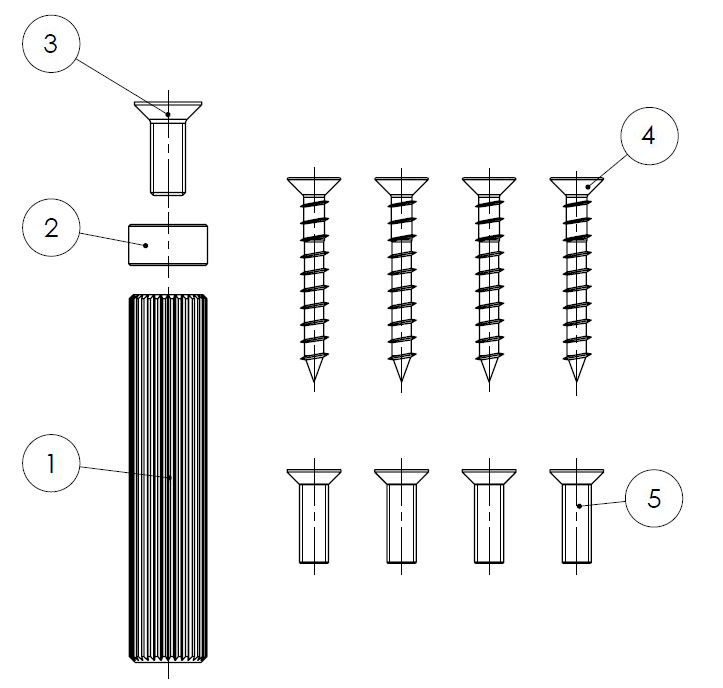 4. Саморізи фіксуючі до дотягувача Ø5х35 – 4шт.