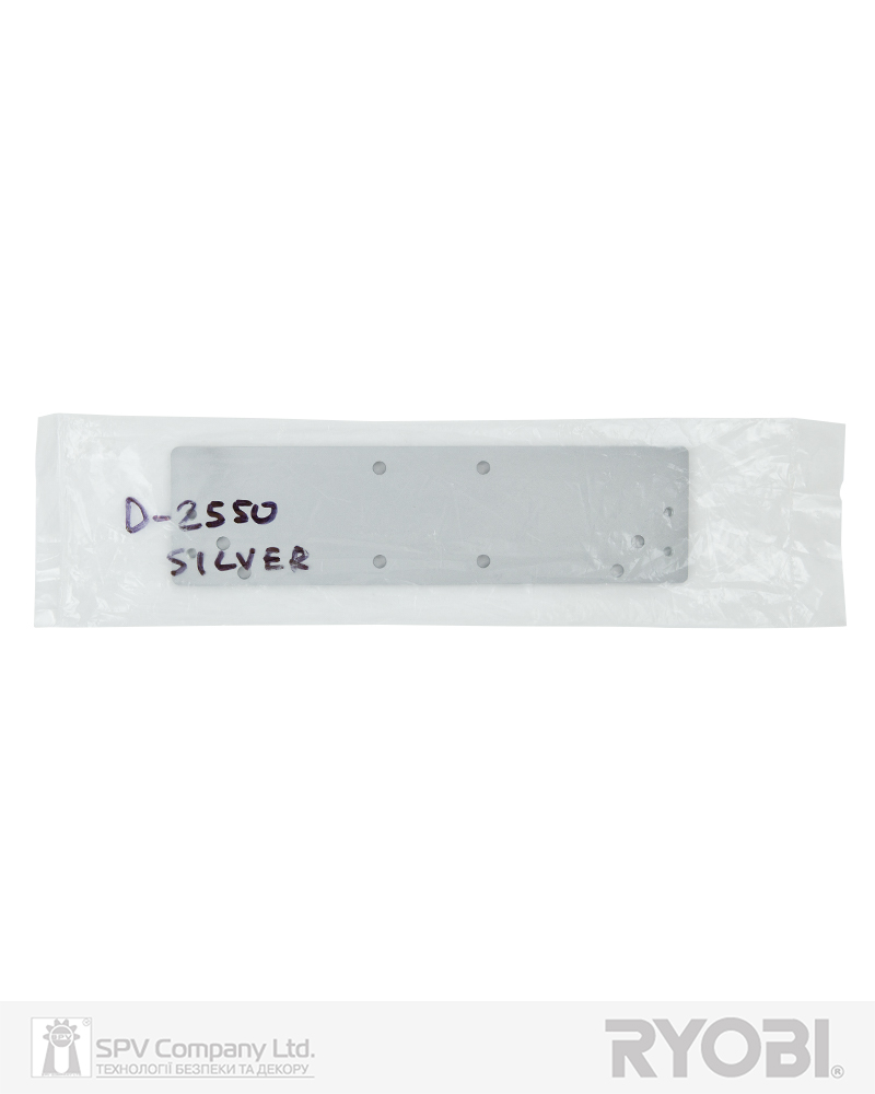 Монтажна пластина до дотягувача RYOBI D-2550. Колір обробки - срібний. Колір відповідає RAL- 9006. Дозволяє встановити дотягувач на вузьку раму.