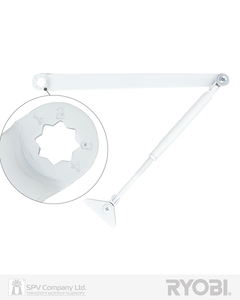 Стандартна тяга без фіксації (STD) RYOBI до дотягувачів серії D-1500/2050/2550. Колір обробки - блискучо білий.