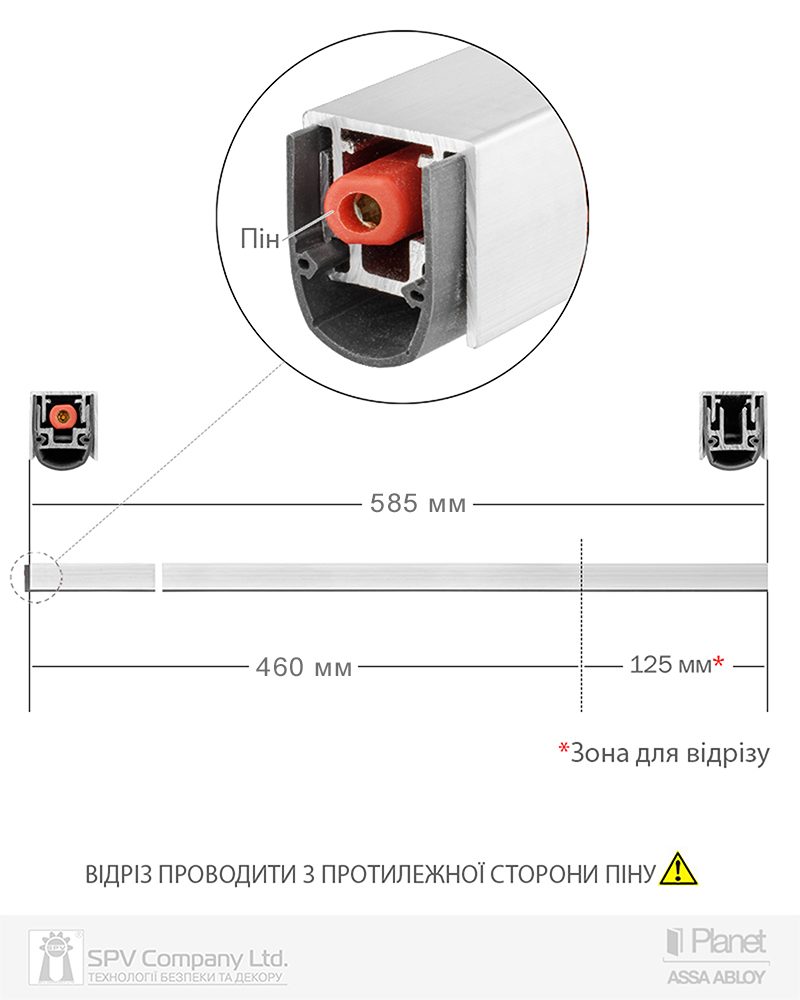 Довжина - 585 мм. Зменшення довжини в межах 125мм. Для дверних полотен шириною від 460 мм. до 585 мм.