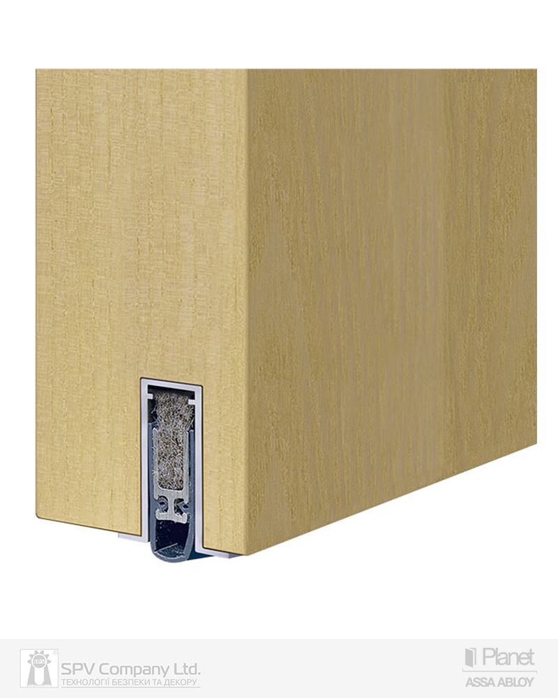 Поріг висувний для дерев'яних дверей, розташованих в приміщеннях з рівною поверхнею підлоги. Тихе, рівномірне паралельне опускання з автоматичною компенсацією ухилу підлоги. Можливе використання на металевих та профільних дверях.