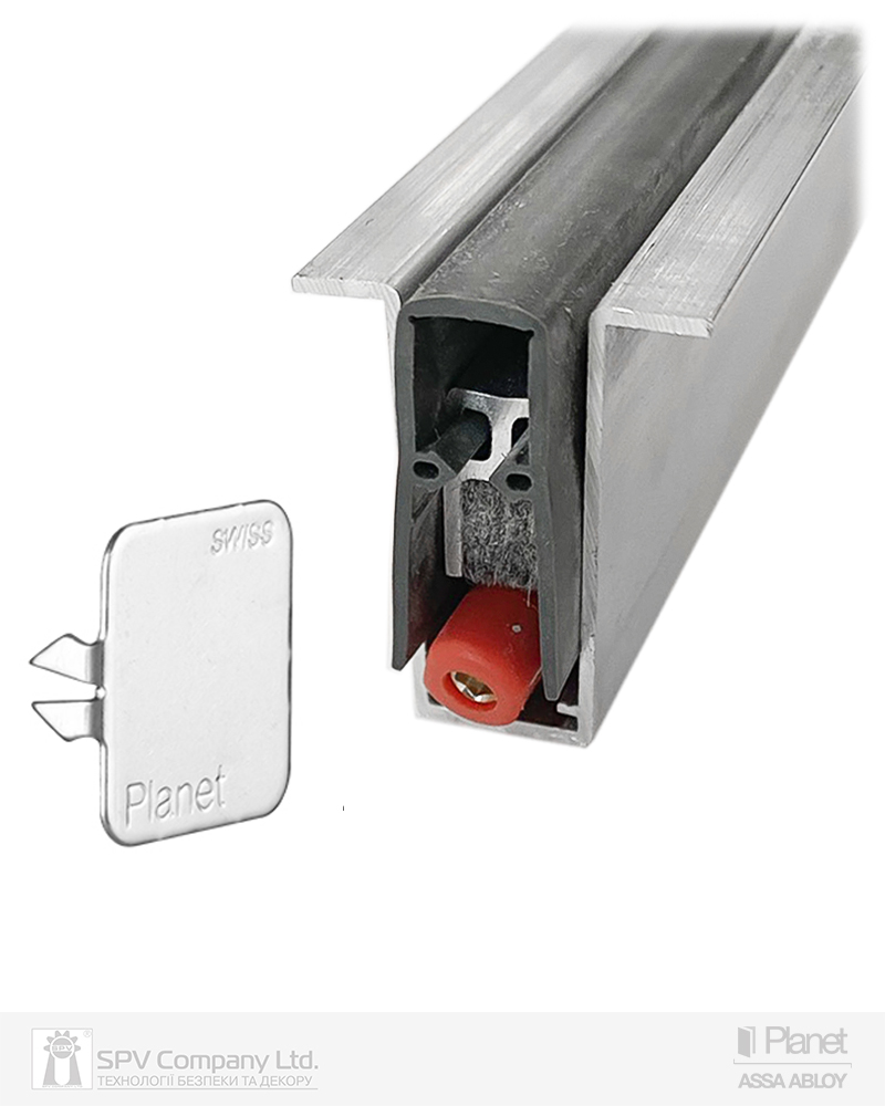 Пін – активатор (оранжевого кольору) опускання ущільнювача спеціальної скошеної форми. Завдяки цьому спрацювання ущільнювача відбувається в останній момент закривання дверей, на 5°-10°, ущільнювач менше зношується.