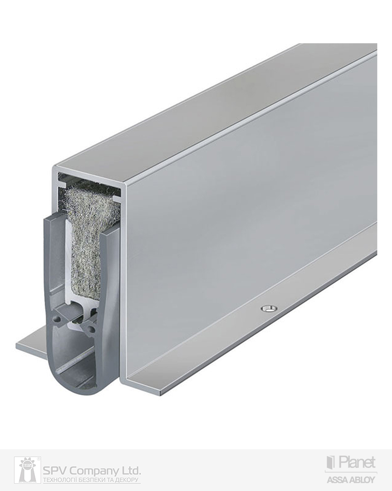 Поріг висувний для дерев'яних дверей, розташованих в приміщеннях з рівною поверхнею підлоги. Тихе, рівномірне паралельне опускання з автоматичною компенсацією ухилу підлоги. Можливе використання на металевих та профільних дверях.