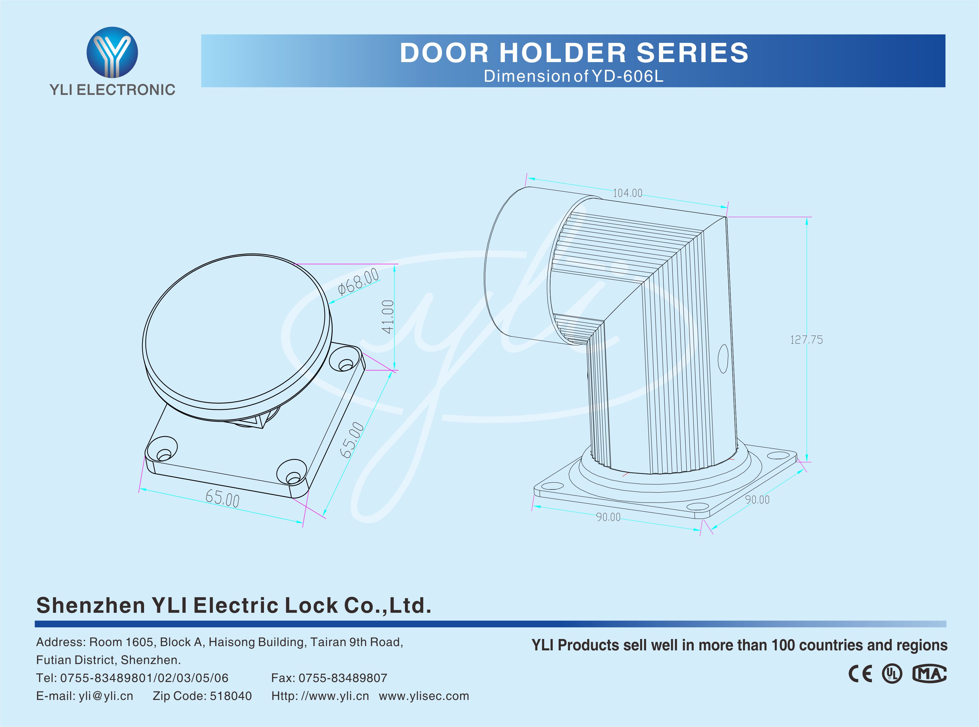 Магнітний фіксатор YLI YD-606L з кнопкою скасування фіксації дверей.