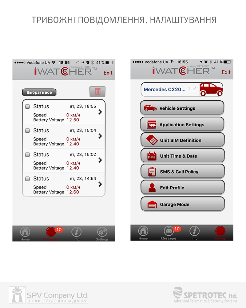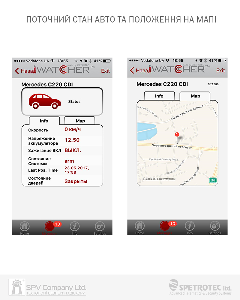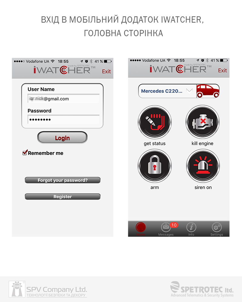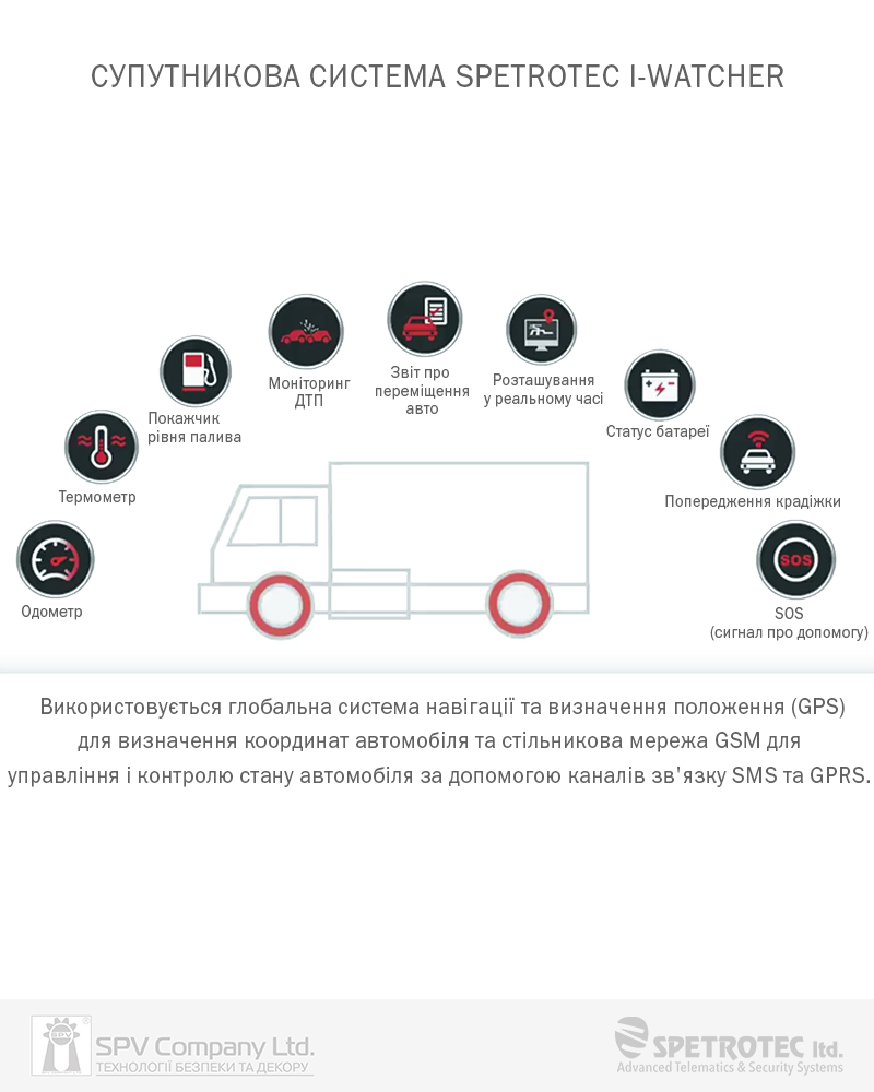 Супутниковий протиугінний імобілайзер iWatcher Cellular Alarm CTR - універсальний і економічно вигідний стільниковий GSM/GPS пристрій сигналізації та контролю, призначений для запобігання викрадення, який забезпечує можливість відстеження в режимі реального часу. Використовується глобальна система навігації та визначення положення (GPS) для визначення координат автомобіля, та стільникова мережа GSM для управління і контролю стану автомобіля за допомогою каналів зв'язку SMS та GPRS. Легкий в використанні додаток з графічним інтерфейсом для смартфона забезпечує дистанційне управління та надає можливість отримувати від автомобіля важливі дані і сигнали тривоги. Увімкнення та вимкнення режиму охорони автомобіля здійснюється за допомогою пульта дистанційного управління. В комплекті системи два дистанційних пульта.