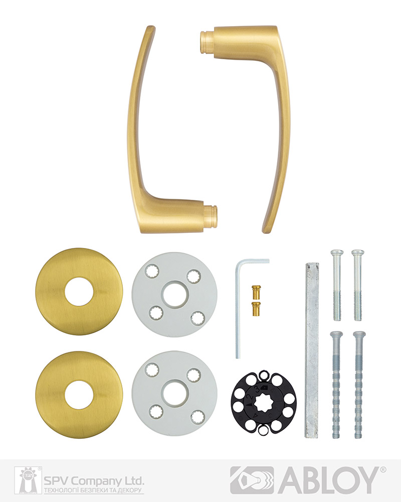 Обробка латунь матова, має золотисто-жовтий колір натуральної латуні та матову поверхню, яка оброблена щіткою. Найкраще виглядає на темних дверях, підходить до інтер’єрів у класичному стилі.
