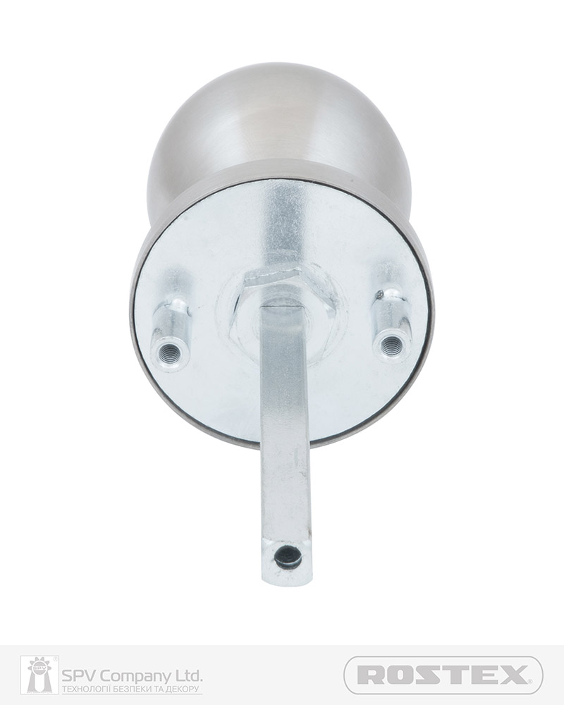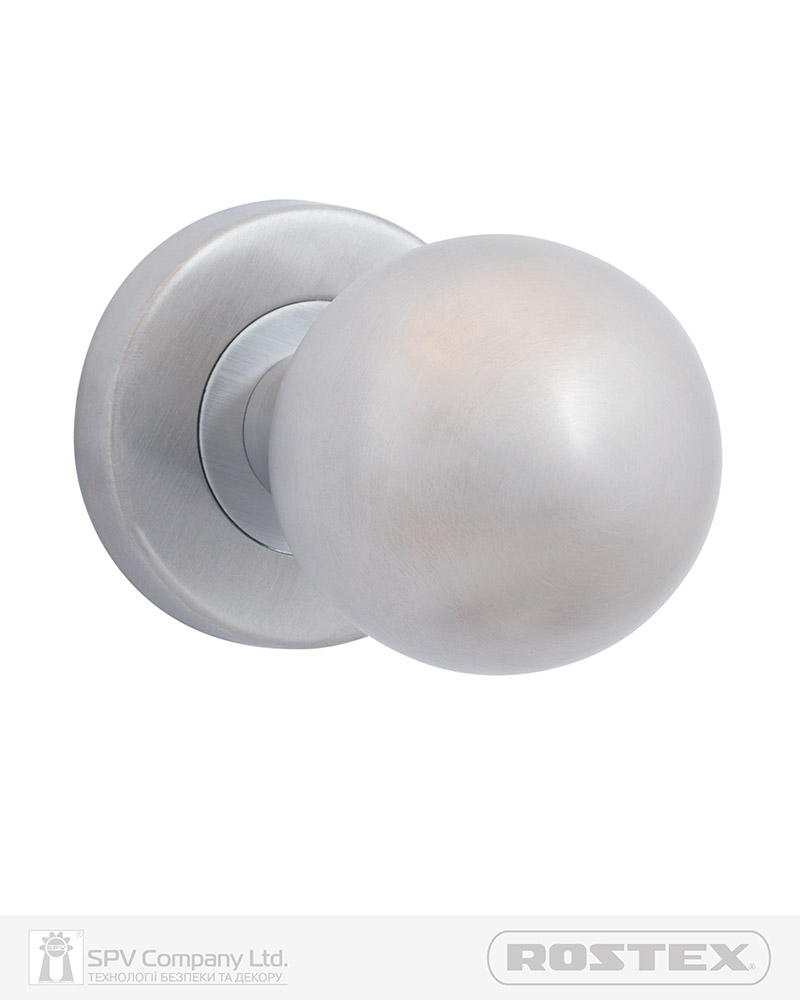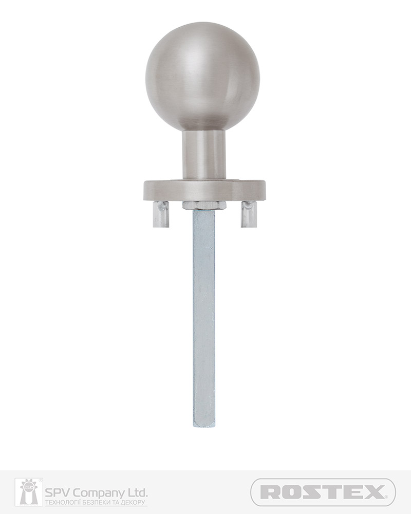 Ручка-кнопка підходить для дверей товщиною 38-52 мм. Довжина штоку 85мм. Дизайн ручки пасуватиме інтер’єрам громадського призначення. Матова поверхня та сферична форма приємні на дотик. Фурнітура має щиток круглої форми.