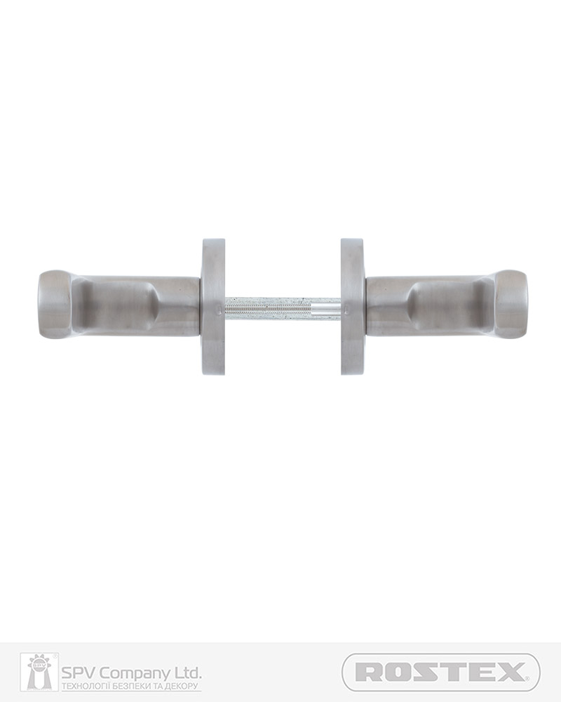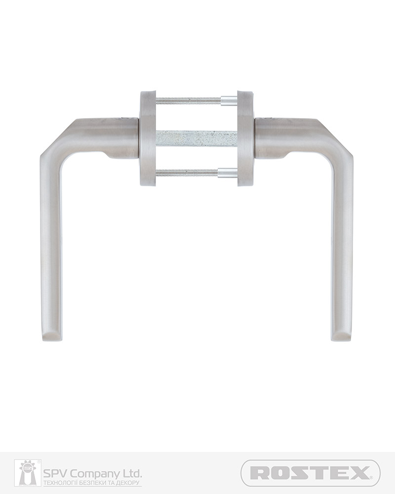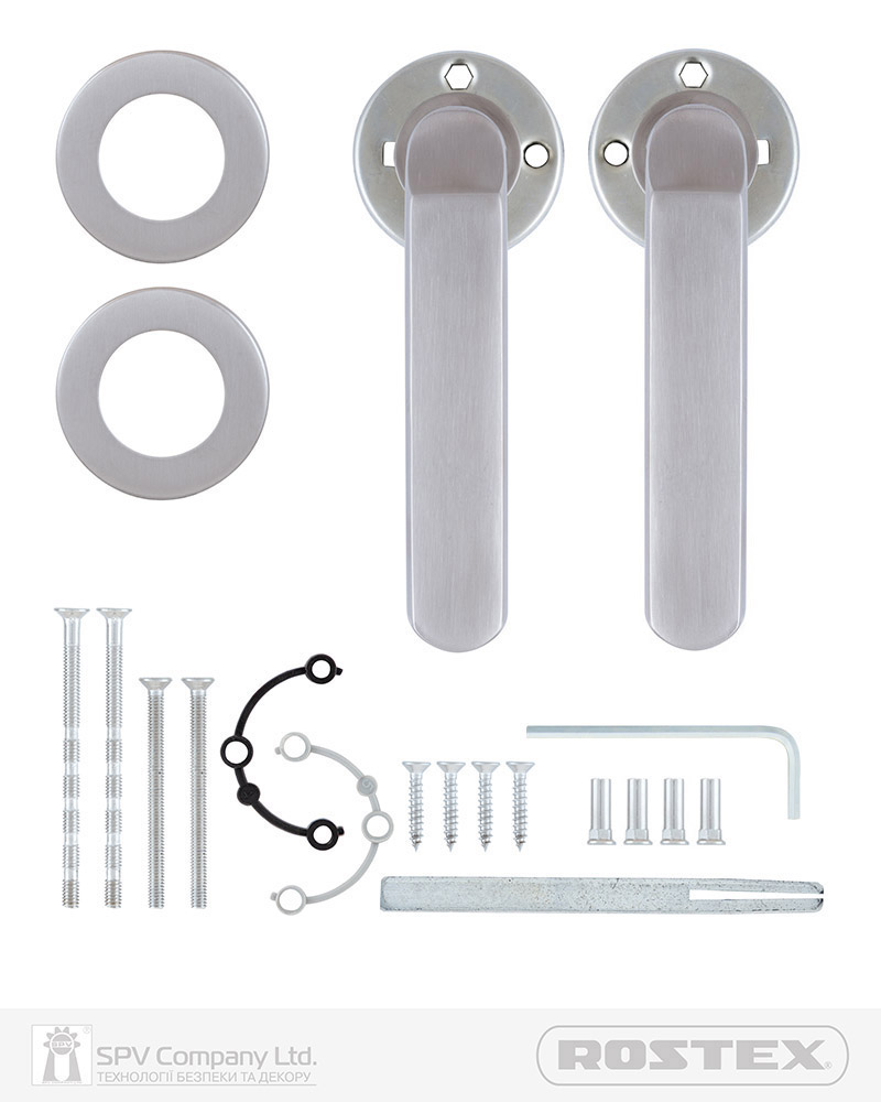Підходить для дверей завтовшки 38-52 мм. Має якісну поворотну пружину, що розрахована на велике експлуатаційне навантаження. Європейський стандарт дверних ручок - EN 1906. В комплекті: шток – 8х8 мм, саморізи для кріплення безпосередньо до полотна дверей та болти М4 для наскрізного кріплення з заглушками. Болти можна вкорочувати в залежності від товщини дверей. Відстань між болтами 38 мм. Такий набір дозволяє кріпити ручку, як до полотна дверей, так і наскрізними гвинтами (якщо у замку є отвори), в залежності від вашого вибору. Кріплення з нержавіючої сталі. Пластикові вставки використовують, якщо ручка монтується наскрізними гвинтами. Вони виконують роль прихованого спейсера і запобігають тертю щитка ручки по полотну дверей. В комплекті дві пластикові вставки: номер «5» для зовнішньої сторони та номер «4» для внутрішньої.