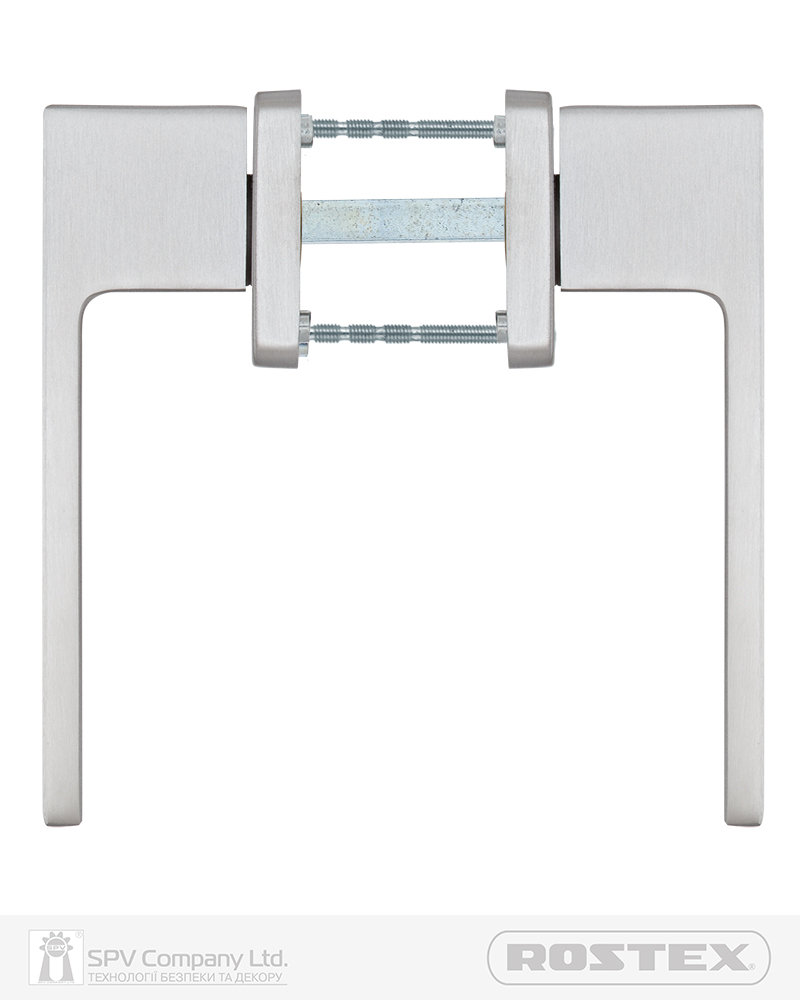 Підходить для дверей завтовшки 38-52 мм. Має якісну поворотну пружину, що розрахована на велике експлуатаційне навантаження та посилену конструкцію з фіксуючими металевими елементами. Європейський стандарт дверних ручок - EN 1906. В комплекті: шток – 8х8 мм, болти М4 для наскрізного кріплення з заглушками. Болти можна вкорочувати в залежності від товщини дверей. Відстань між болтами 38 мм. Такий набір дозволяє кріпити ручку наскрізними гвинтами , якщо у замку є отвори. Кріплення з нержавіючої сталі.