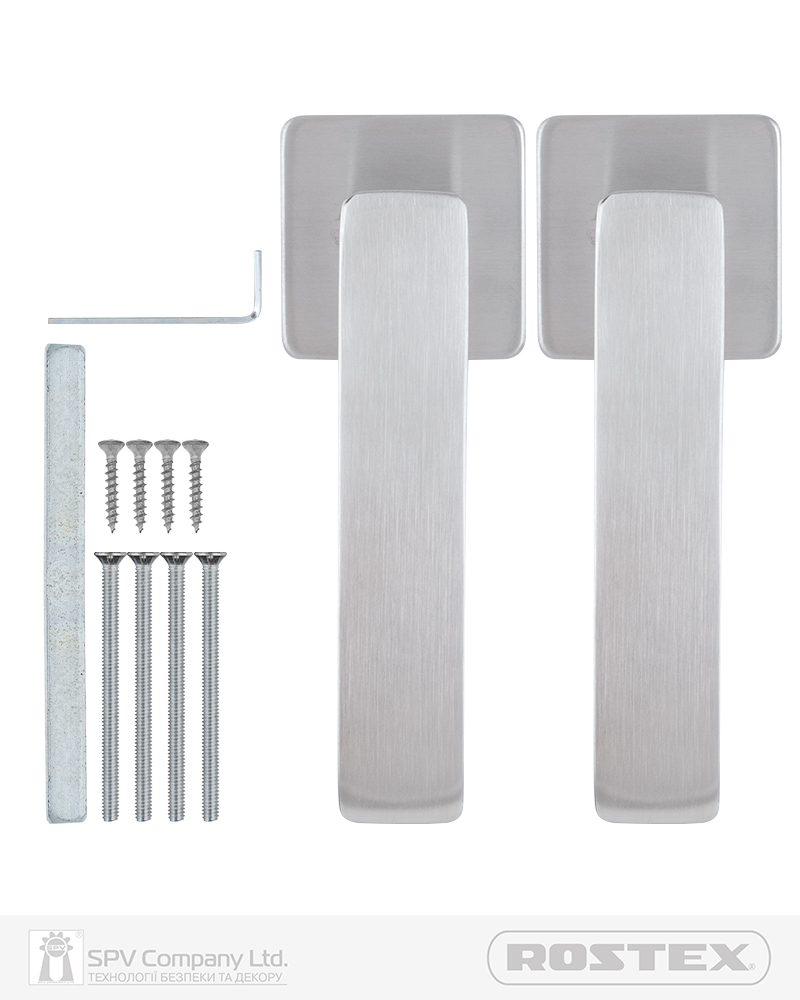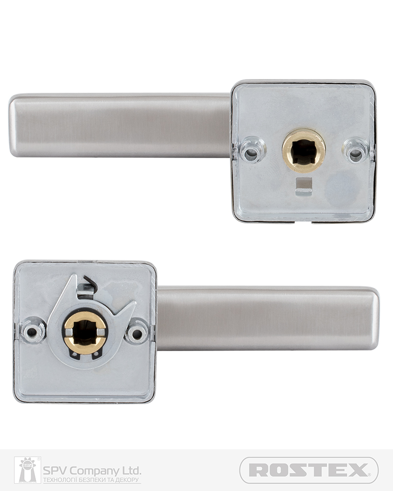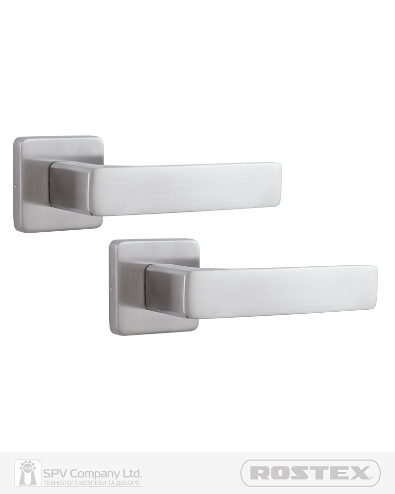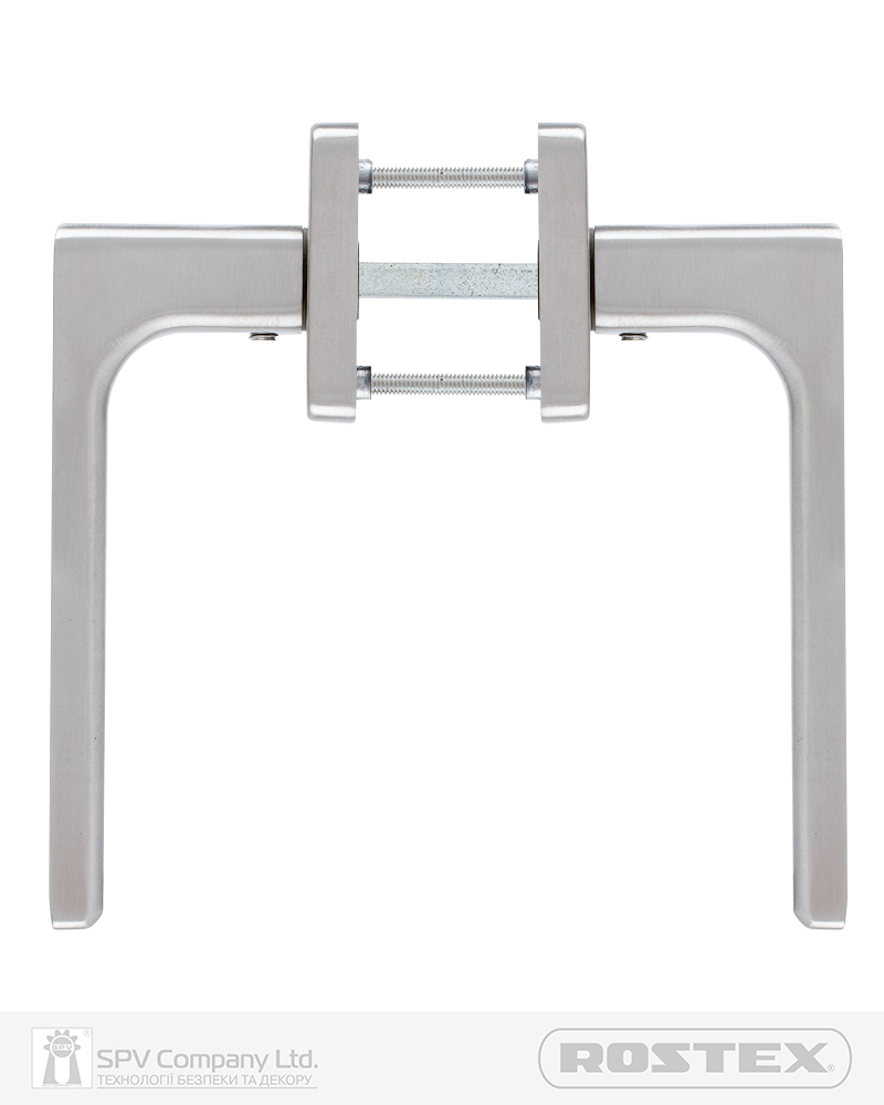 Ручка дверна ROSTEX SAVONA H53 mov-mov SQUARE Нерж.сталь_мат 38-52мм наскрізь Savona NEREZ_MAT Комплект