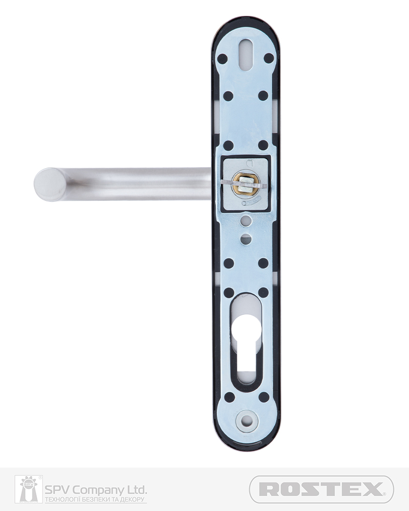 Встановлюється на двері товщиною 65-80мм. Установка на двері за допомогою гвинтів M8x50 мм у будь-якому місці дверей. Монтаж на двері можливий у вертикальному, горизонтальному або діагональному положенні. На двері із замками із звичайною заскочкою необхідно підібрати поворотну ручку-половинку для монтажу із внутрішнього боку дверей з метою забезпечення вільного виходу. Для дверей із роликовою заскочкою можна придбати двосторонню ручку скобу. Для захисту замкового циліндру рекомендуємо застосовувати протектор ROSTEX QUADRUM або ROSTEX ROTONDUM з обробкою нержавіюча сталь матова.