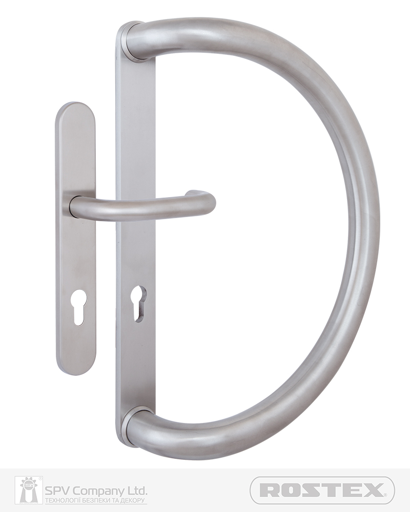 Ручка-скоба ROSTEX DUBLIN одностороння для вхідних дверей. Виготовлена з нержавіючої сталі з обробкою нержавіюча сталь матова, призначена для використання у зовнішньому середовищі.