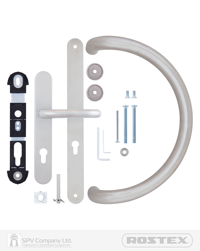 Ручка-скоба ROSTEX DUBLIN одностороння для вхідних дверей. Виготовлена з нержавіючої сталі з обробкою нержавіюча сталь матова, призначена для використання у зовнішньому середовищі.
