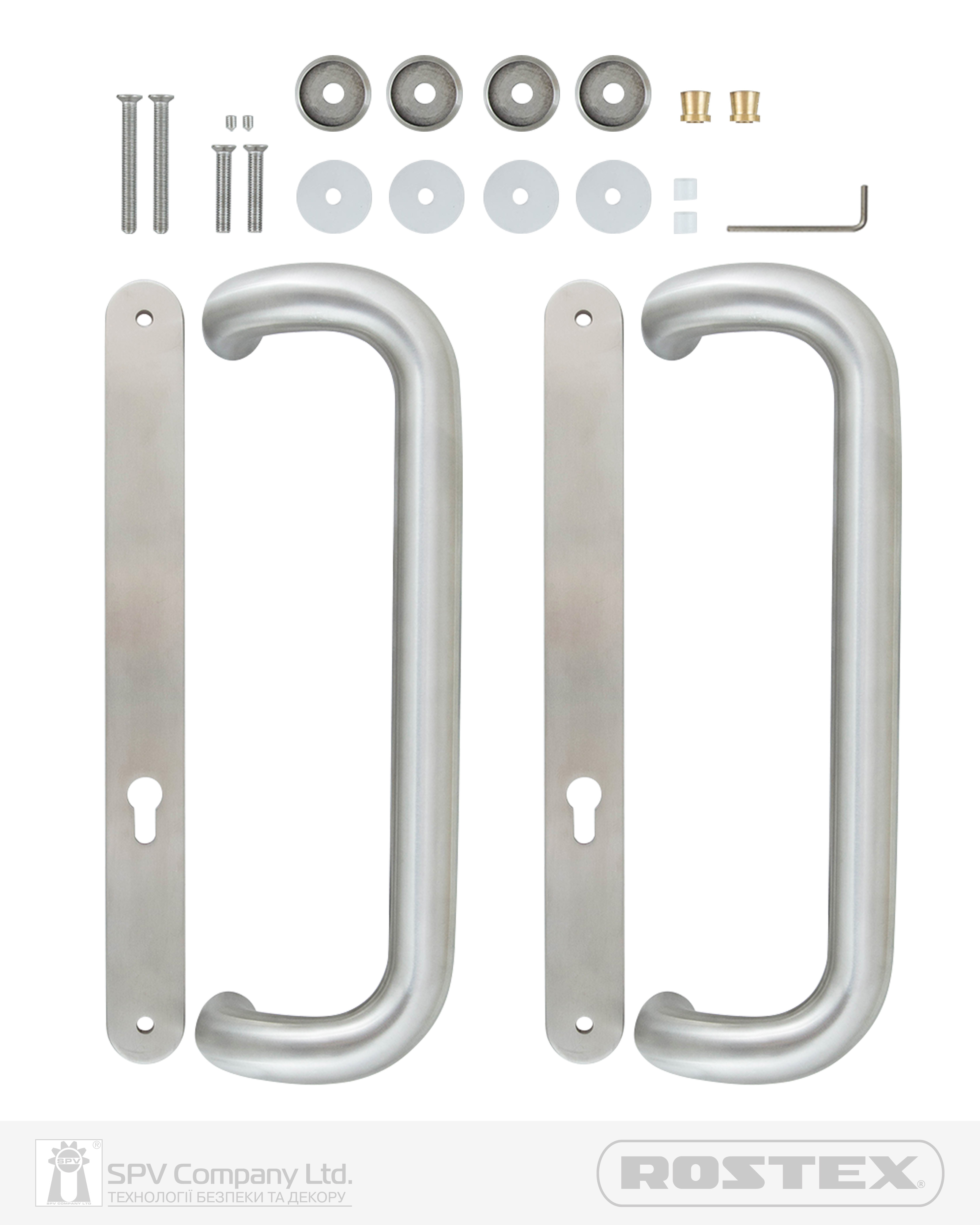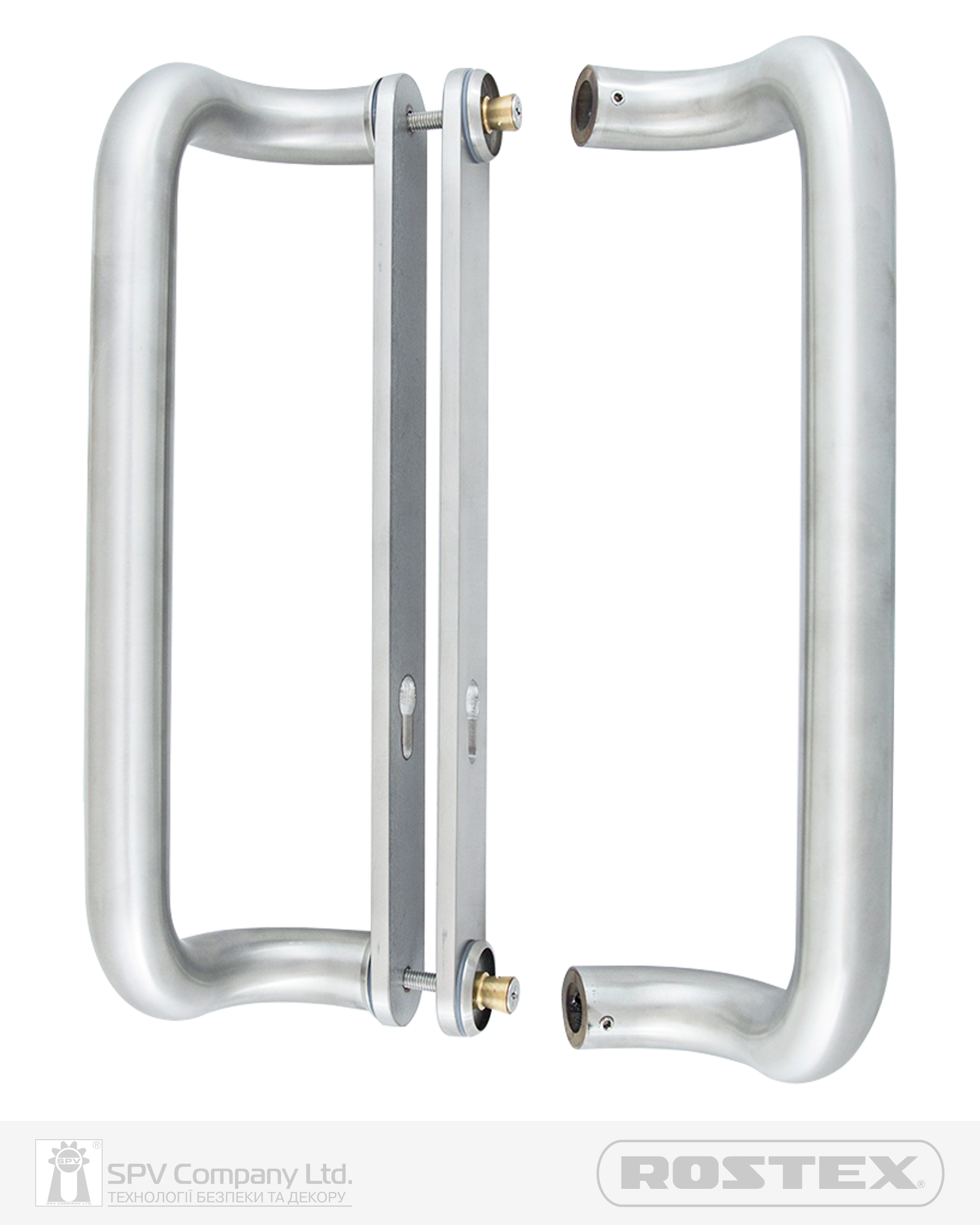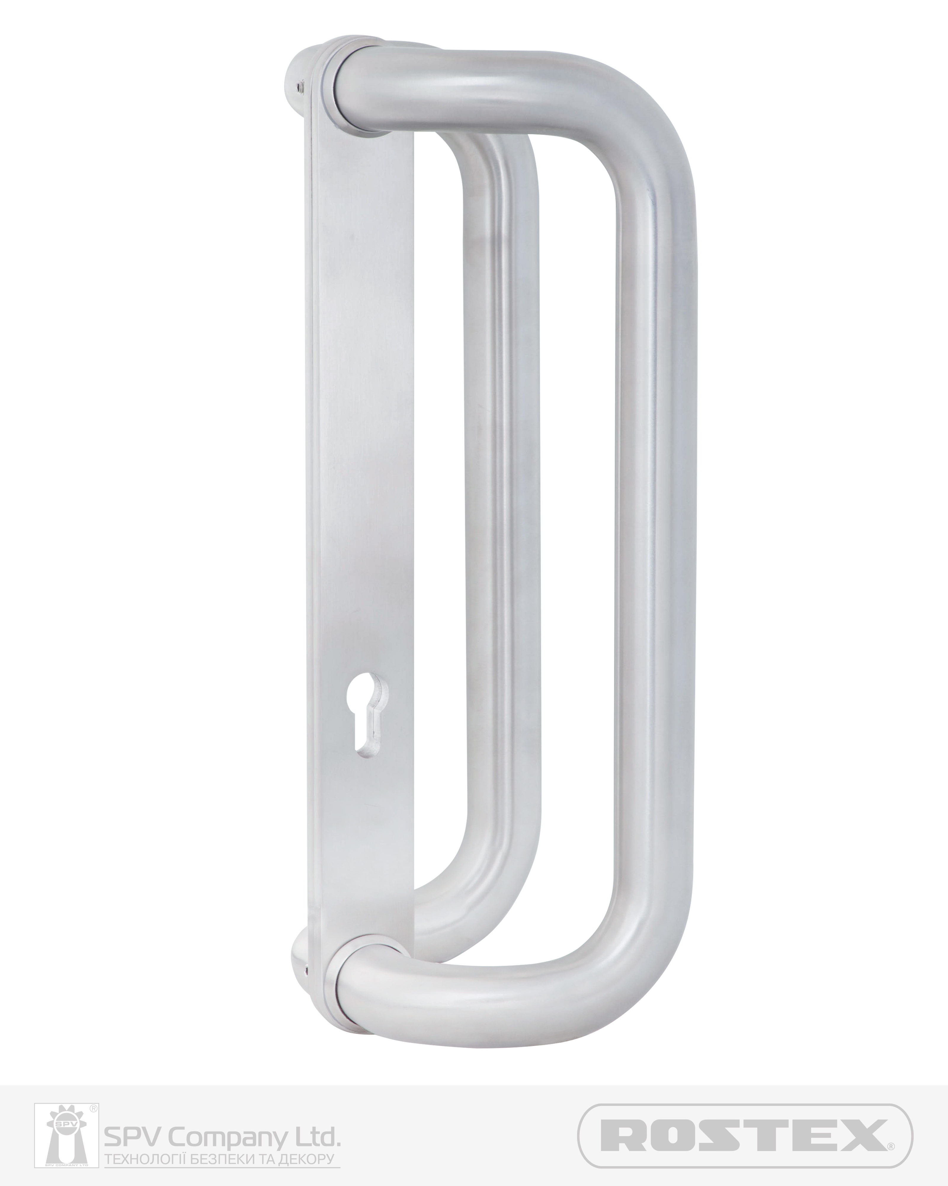 Ручка-скоба ROSTEX GENEVA одностороння для вхідних дверей. Виготовлена з нержавіючої сталі з обробкою нержавіюча сталь матова, призначена для використання  у зовнішньому середовищі.