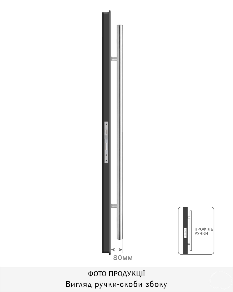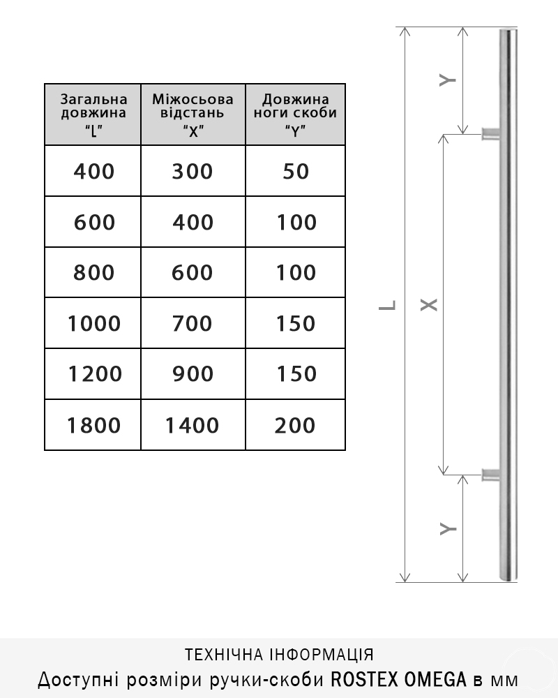Ручка-скоба ROSTEX OMEGA одностороння для вхідних дверей. Виготовлена з нержавіючої сталі з обробкою нержавіюча сталь матова, призначена для використання у зовнішньому середовищі.