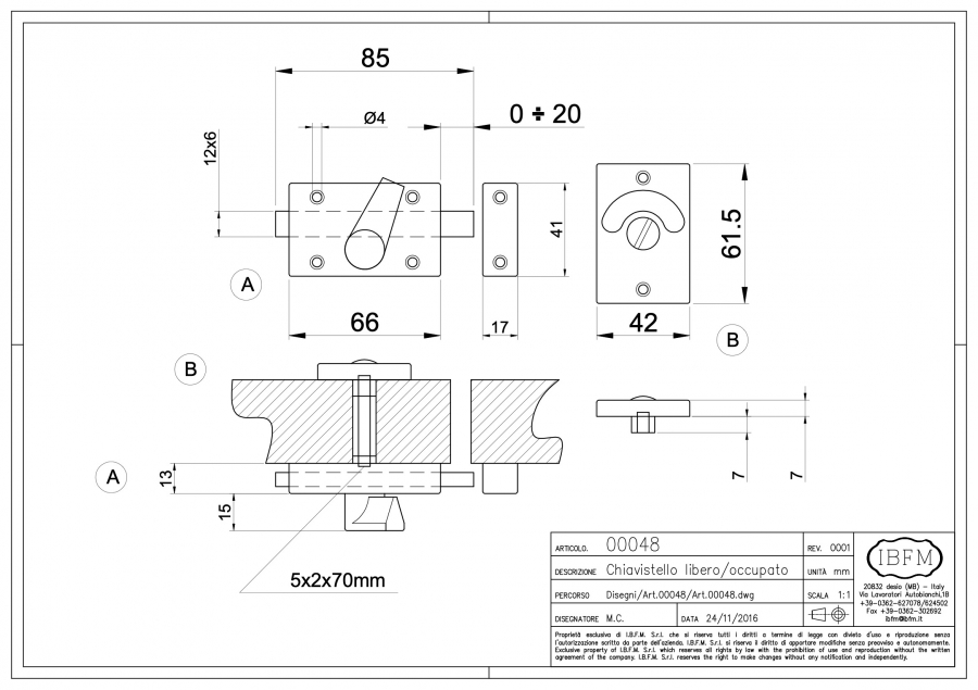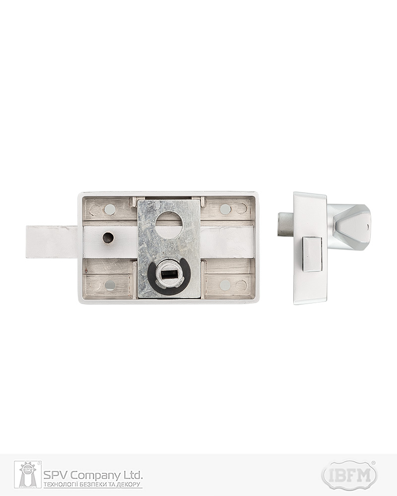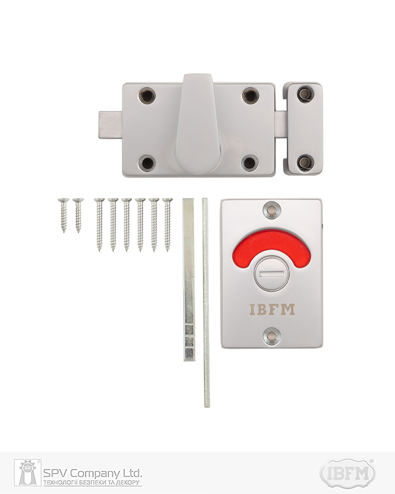 Використовується для замикання громадських дверей, наприклад, у громадських туалетах. Підходить для прикручування до дерева або легкого металу.
