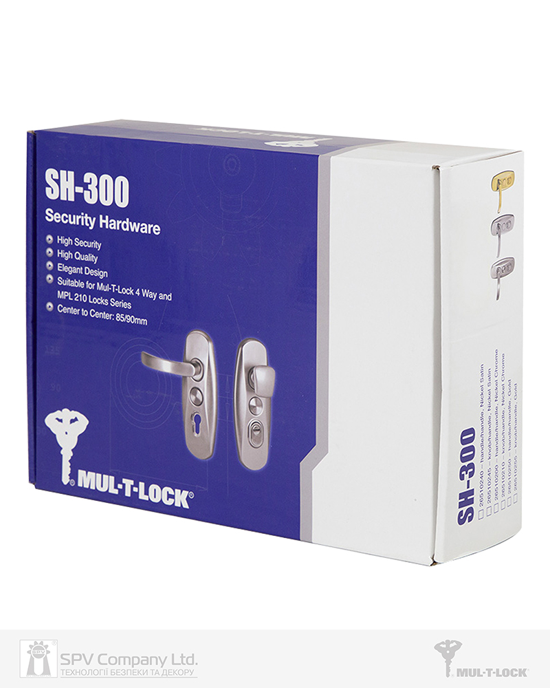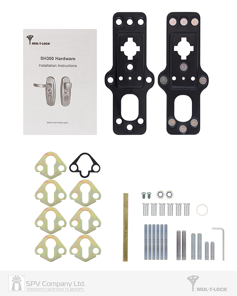 Фурнітура захисна SH300/PLATINUM до замків MUL-T-LOCK M265, 267, 603, MPL212, MPL214 для вхідних металевих дверей товщиною 50-55мм з можливістю подовження до 95мм (комплекти подовження замовляються окремо). З-й клас безпеки. Матеріал: сталь. Плата, що захищає корпус замка. Загартований протектор циліндра із захистом від висвердлювання