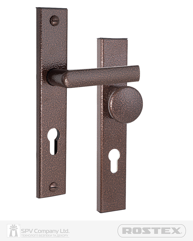 Фурнітура захисна ROSTEX 802 до основних замків для вхідних металевих, деревяних та профільних дверей товщиною 38-55мм з можливістю подовження до 100мм (комплекти подовження замовляються окремо).